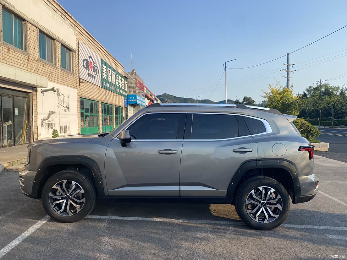 外观硬朗大气,刚开始看着有些设计用力过猛,时间长了看着挺好。特别喜欢圆灯的设计。长4.7米恰到好处,城市用车停车方便,自驾露营也能装下各种设备。1.9米宽,刚开始需要适应,过一些限宽的地方,停较窄的车位,需要谨慎些。加上车顶行李架后,车高接近2米,下地库需要注意⚠️。该车有黑,白,橙,灰四个颜色,白色不喜欢,橙色太扎眼,黑色太阳纹和不耐脏,综合选了灰色。