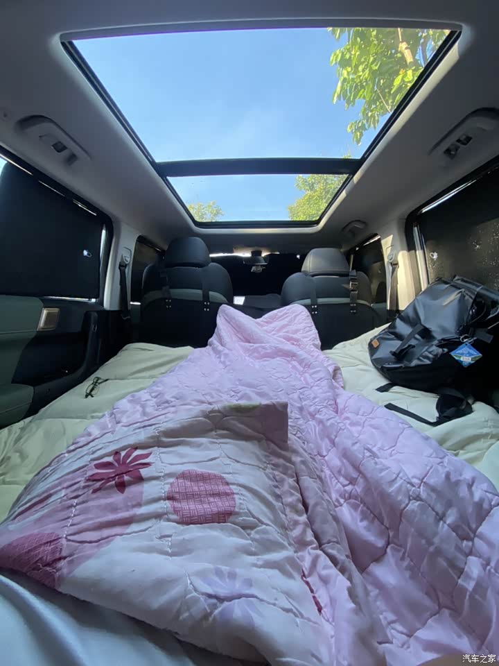空间满足自己需求,加个延长垫就可以平躺在里面,前后排坐人空间也够大,不觉得拥挤,坐在后排膝盖到前座有一拳多距离,头距离车顶有两拳距离,整个感觉就很舒服,后排座椅下还设计了个凹槽,可以放东西,比如鱼杆防潮垫啥的,这个设计很赞👍