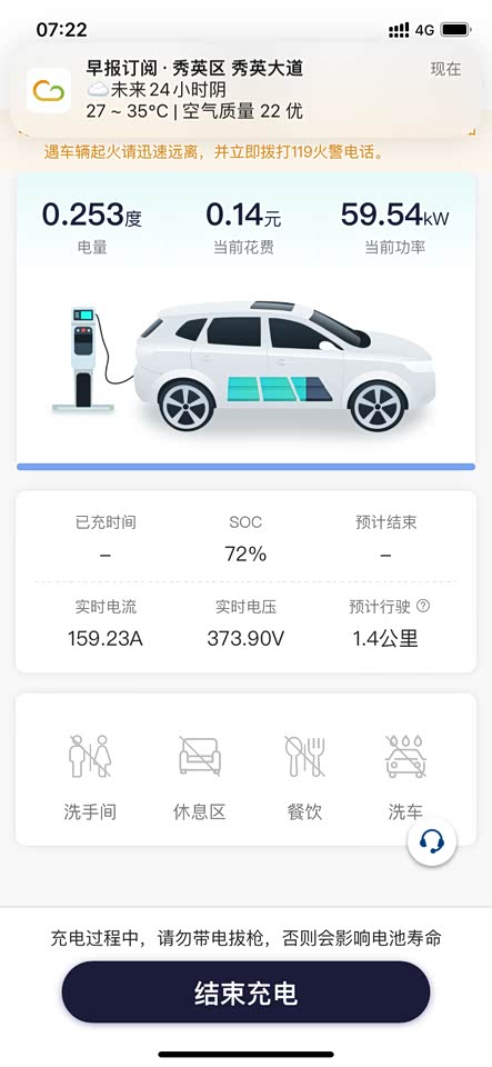 续航还行,高速开100公里每小时,472里程可以跑300那样,差不多6折多,越快耗电越快,高速都有充电桩,对电需求没有焦虑😃