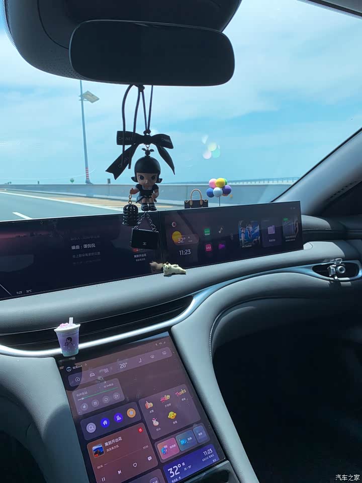 内饰我选的是灰黑色,因为平时喜欢车上吃早饭,所以选的是比较耐脏的颜色。整体设计比较圆润,其中半扶方向盘➕贯穿式大横屏我非常喜欢,很大气,同时也能保证副驾驶位和后排都可以娱乐观看屏幕,很实用!