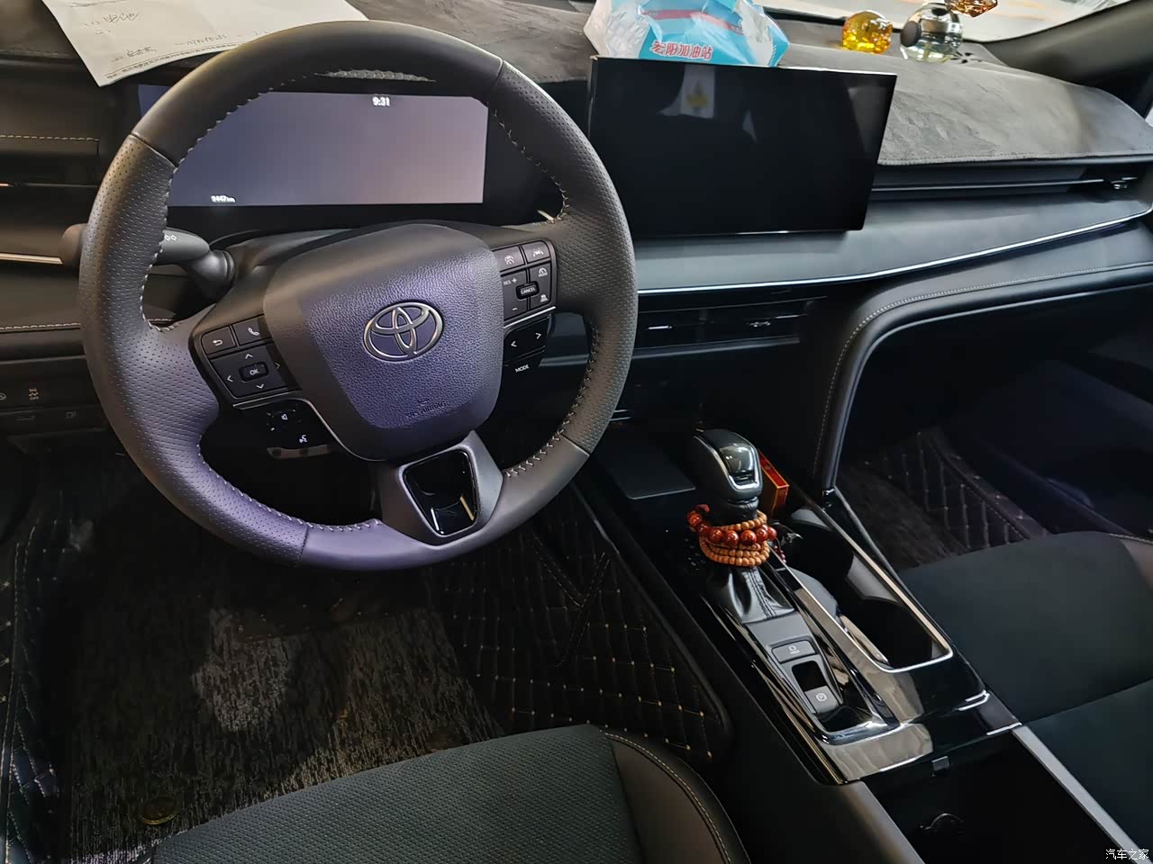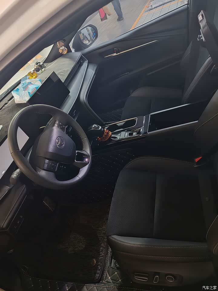 我选的纯黑配色,看上去很低调但不失高级感,材质用料的感觉非常舒服,座椅的包覆感和承托力很好,买来时车内也没啥异味, 中间挡板前面可以平放几部手机,最有意思的是杯托处的处理,向内突出正好可以卡住车钥匙很方便。
