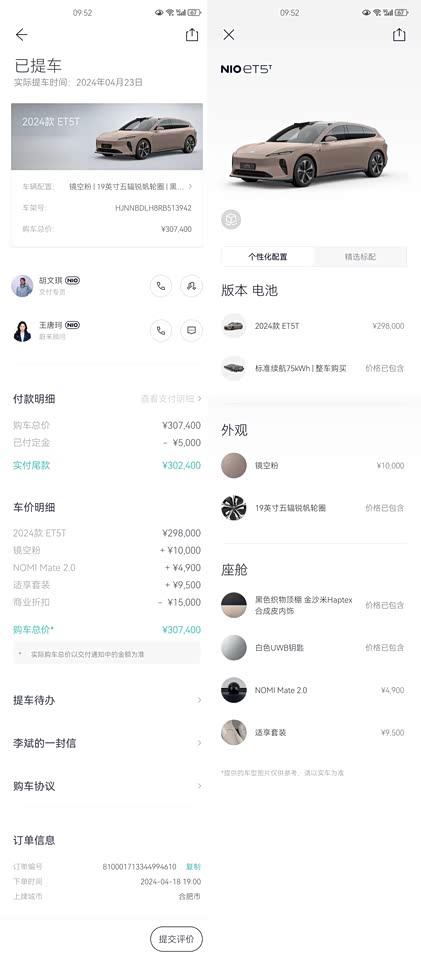 电动新能源汽车这个价位觉得性价比不错,电池可换(换电3分钟)、可充(家充、超充多种选择)、可升级(有100°(可以跑600-700公里)、150°电池(可以跑1100公里))。至于为什么选择蔚来,很简单,不用考虑电池问题,使劲造就行了。出去旅行电池哪怕磕碰也不用管,交给蔚来就行了。网上各种喷蔚来的太多了,因为他们酸啊~~~只有蔚来车主才能体会到服务,哪怕半夜群里发个信息都有人回复信息,解决问题。从关注蔚来(2019年)到提车等了5年。ET5上市(2021.12.18)时真的很心动外观造型太美了,那时一有空就泡在蔚来空间。在后来又出了ET5T(2023.6.15上市)旅行车,真的太喜欢了,种草了,不能自拔。(21年家里又买增购一台燃油车,那时蔚来没出轿车全是SUV,对轿车情有独钟)5T出来后每天都在APP、汽车论坛看照片、评测、试驾、车型对比。只要关于5T视频基本都看过了。————那句话怎么说来着,早买早享受,迟买享折扣!赶上了4月份政策:置换补贴15000、政府补贴8000(开票后直接返还银行卡)、免费换电劵(36张),手机一部,保险6909(也可以外面买)送全车贴膜B柱、码表、中控屏,24000积分(相当于2400元可在商城兑换商品)。https://club.autohome.com.cn/bbs/thread/eded304ebe36ec19/108160303-1.html#pvareaid=6830286可查看提车日记
