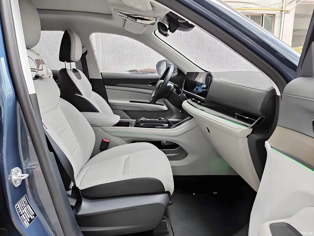 内饰简约而不简单,材质做工细致,用料扎实,手感柔和,多功能方向盘握感丰富。12.3英寸的中控屏,用起来也是比较方便,座椅填充物很足,包裹性很好。我改了氛围灯,夜晚看上去很温馨。