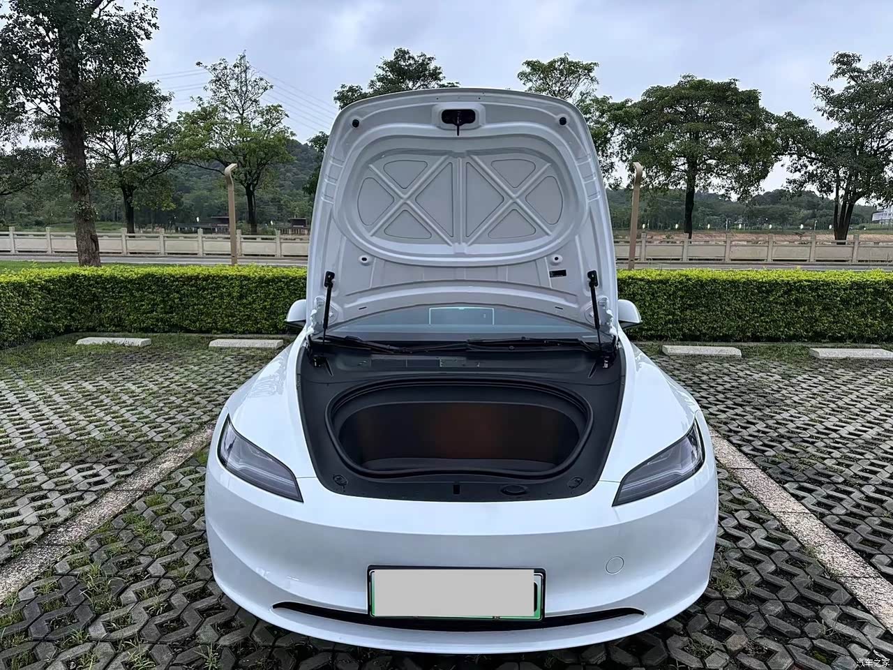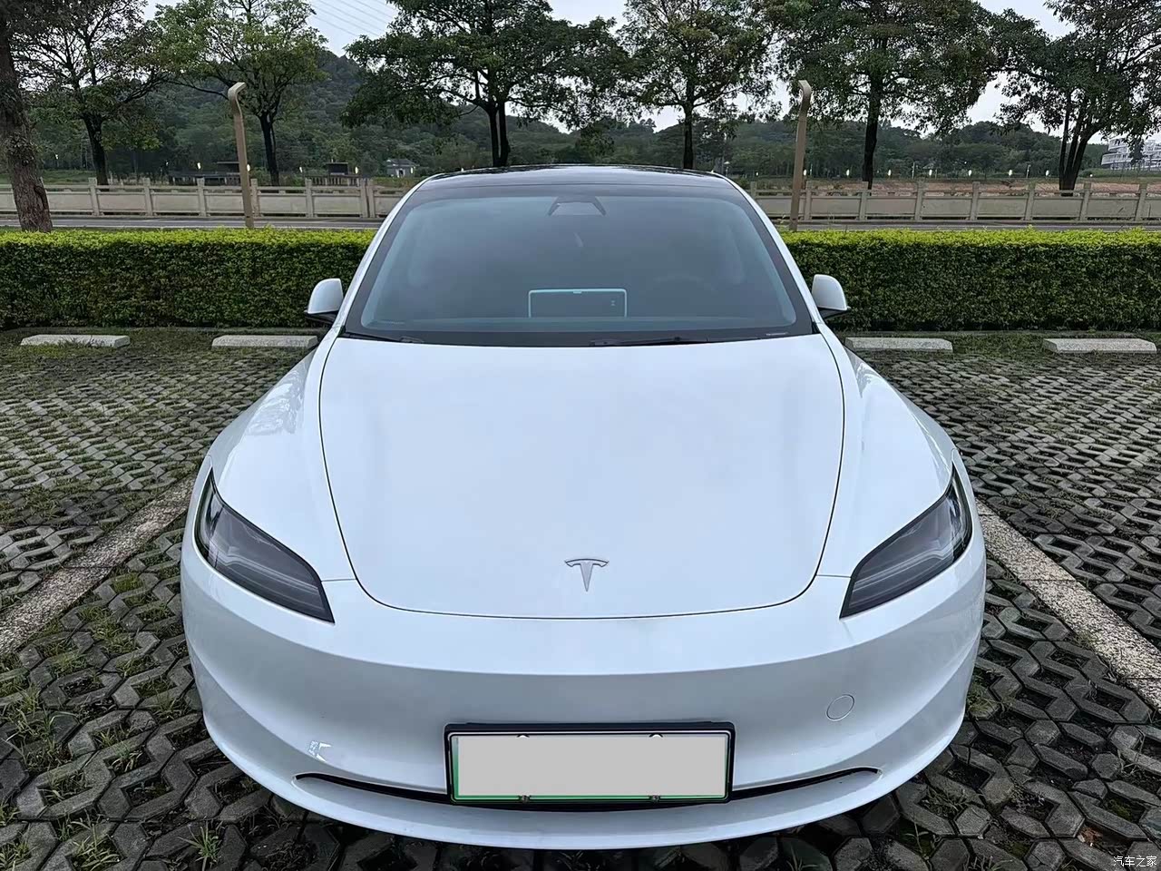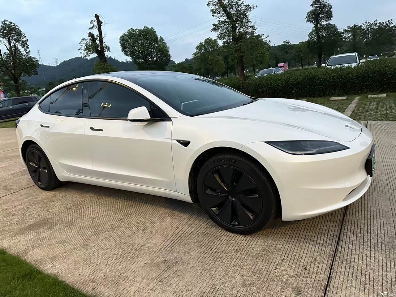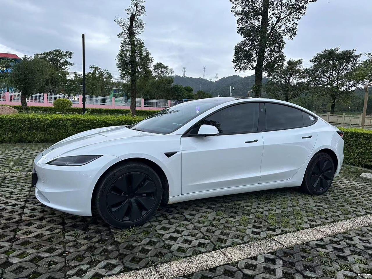 新Model 3的外观设计简洁而现代,流线型的车身和无框车门设计使其看起来非常时尚和动感。前脸采用了极简的设计风格,没有传统的进气格栅,搭配锐利的LED大灯组,整体视觉效果非常具有未来感。