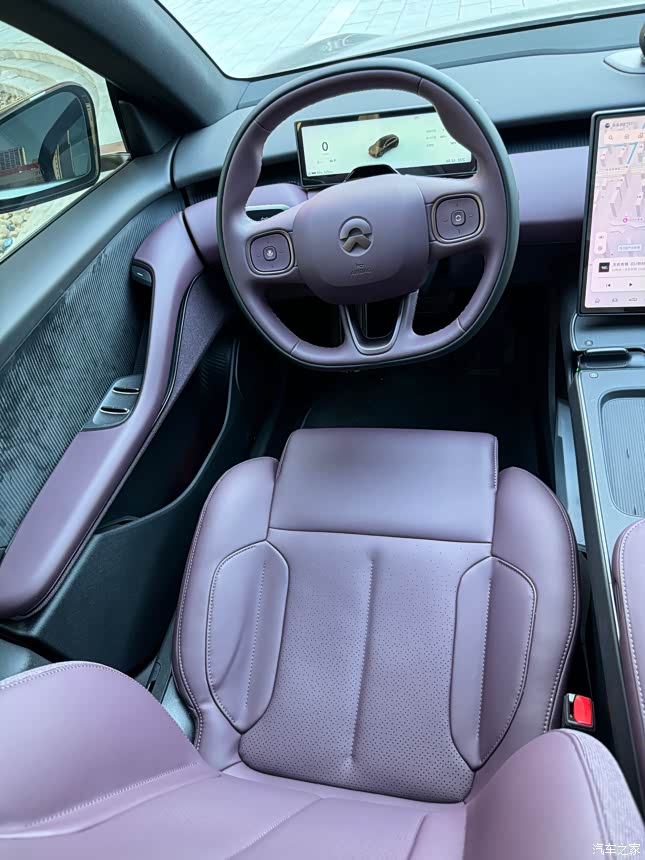 紫色内饰,做工很精细,仿真皮,四个座椅加热,前排座椅通风,方向盘加热。当时选择紫色内饰是看到了展车搭配,当时去仔细观察了一下,确实好看,黑外配紫内,简直完美。但是也有不完美的地方,就是主驾的遮阳镜放下来后,开车会有异响,后排车门处也偶尔有异响