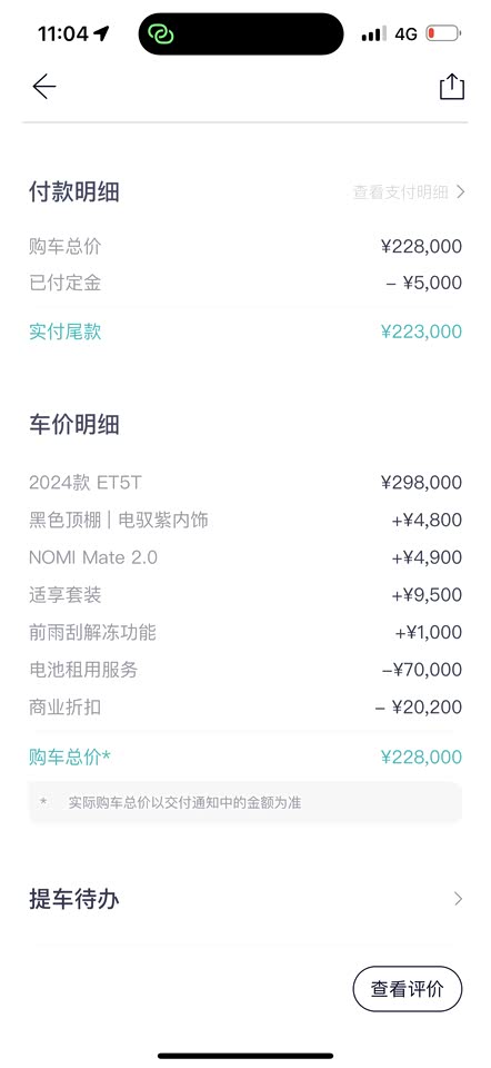 为什么会买这个车呢,主要前两年我发小买了辆ET7,我也坐过不少次,也开过不少次,觉得真不错,开着给我的感觉是很舒适很省心,于是蔚来电车就给我留下了很深的印象。上个月我有用车需求了,第一时间就想到了蔚来,因为ET7超过了我的预算,所以我选择去了解ET5T。我认为这辆车还是有比较高的性价比,选装了紫色内饰、nomi、舒享套装。选装基金加上油改电,这些选装是没有花钱的。电池是租赁的,相当于5年内每月租金6百不到,是在我可以接受的范围内。