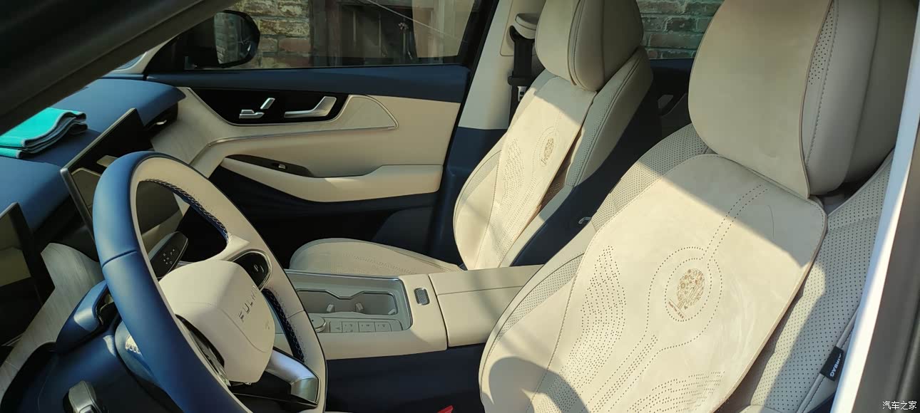 最满意提车速度和服务,要7月3号下定,10号到了以后去提的车,生产日期7月6号!一共跑了3家4s店,徐州,宿州,淮北。加上3家汽贸。当地虽然距离最远但是服务最积极店面大人员多,跟进速度快,招待的水还是冰饮青梅绿茶哦!中午还给专门订餐了! 最满意全黑霸气不输理想,1741车高体量大4795车长又刚好不离谱好倒库,高强度钢车身硬引擎盖也远超同竞品硬度。(对比猛龙,深蓝S7,宋plus都是软趴趴的盖子) 旗舰全车电动座椅,主副驾座椅通风按摩加热都有,副驾女王座椅。驾驶感受舒适不颠簸。非常省油!二排电动座椅有4拳多距离,全平地台,车内头距非常宽敞,小宝宝坐着站着都可以活动的开。二排座椅靠背也可以调节角度!三排临时用,放倒后后备箱超大。 主驾座椅可以多向调节,有腰撑长时间开车也不会累腰。座椅通风是吸气式的,个人感觉很好用不会冻腚哈哈! 车机8155芯片很流畅也挺好用,内置的应用也很实用。 车辆内饰选的蓝白色,全车内部能摸到的都是软的。 hud也非常合适,比较简洁亮度和左右以及高度都可以调节。显示的信息有车速距离道路名称道路限速指标。 座椅高度很不错能完整的看到车头位置,不会影响视线。对开过小车的没有开过大车的女司机也很友好! 手机app远程遥控和也很方便!夏季可以先打开空调上车直接感受凉爽! 旗舰赠送随车充和放电枪,随车电枪目前测试是2kw的充电会显示。放电枪支持最大功率4kw的插座,但是不知道车车最大放电多少功率。