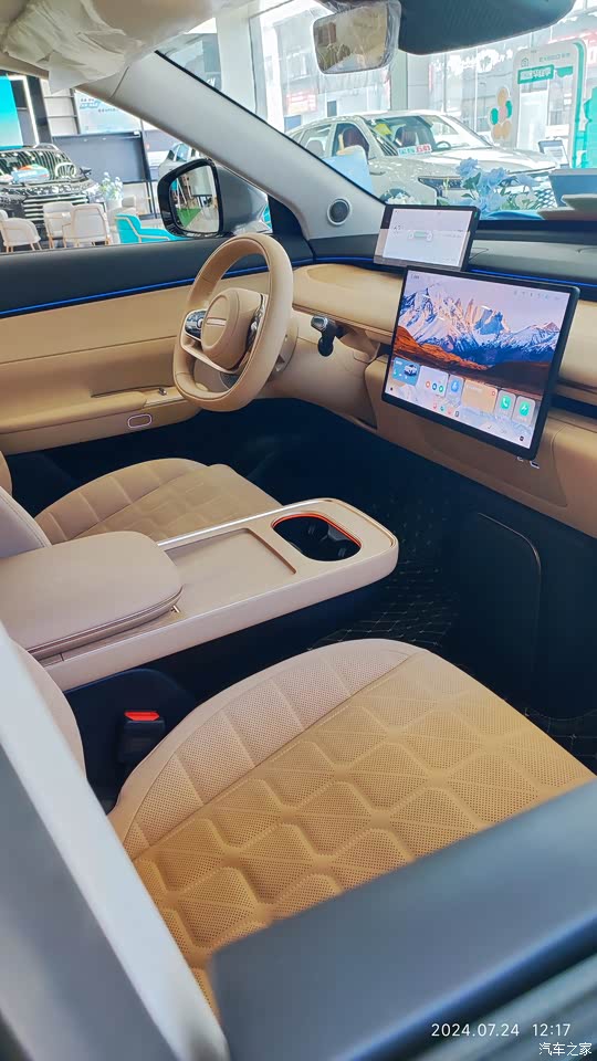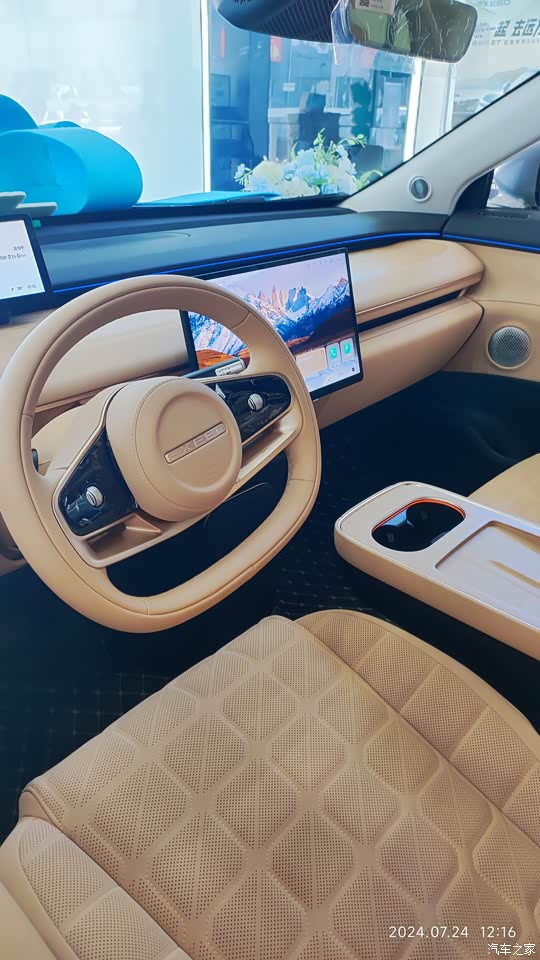 星纪元et的内饰也做出了很好的居家氛围,设计简约明亮,改掉了此前星途,奇瑞车型常见的过渡设计,座舱普遍采用柔和的线条和曲线,中控,车门,扶手台等基本都被软性皮革完全覆盖,超级的豪华感确实做出来了。
