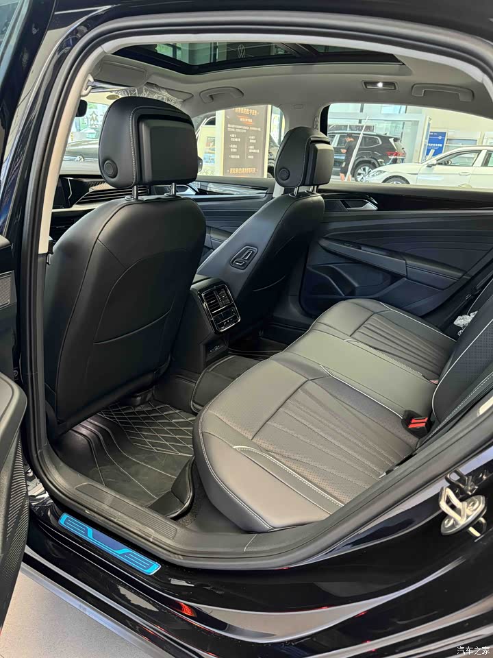 帕萨特的空间表现不错,不仅前排座椅空间宽敞舒适,而且后排也能够并排坐三个人,我一米七八的个子坐后排跷二郎腿也没问题。一家三口使用挺富裕。