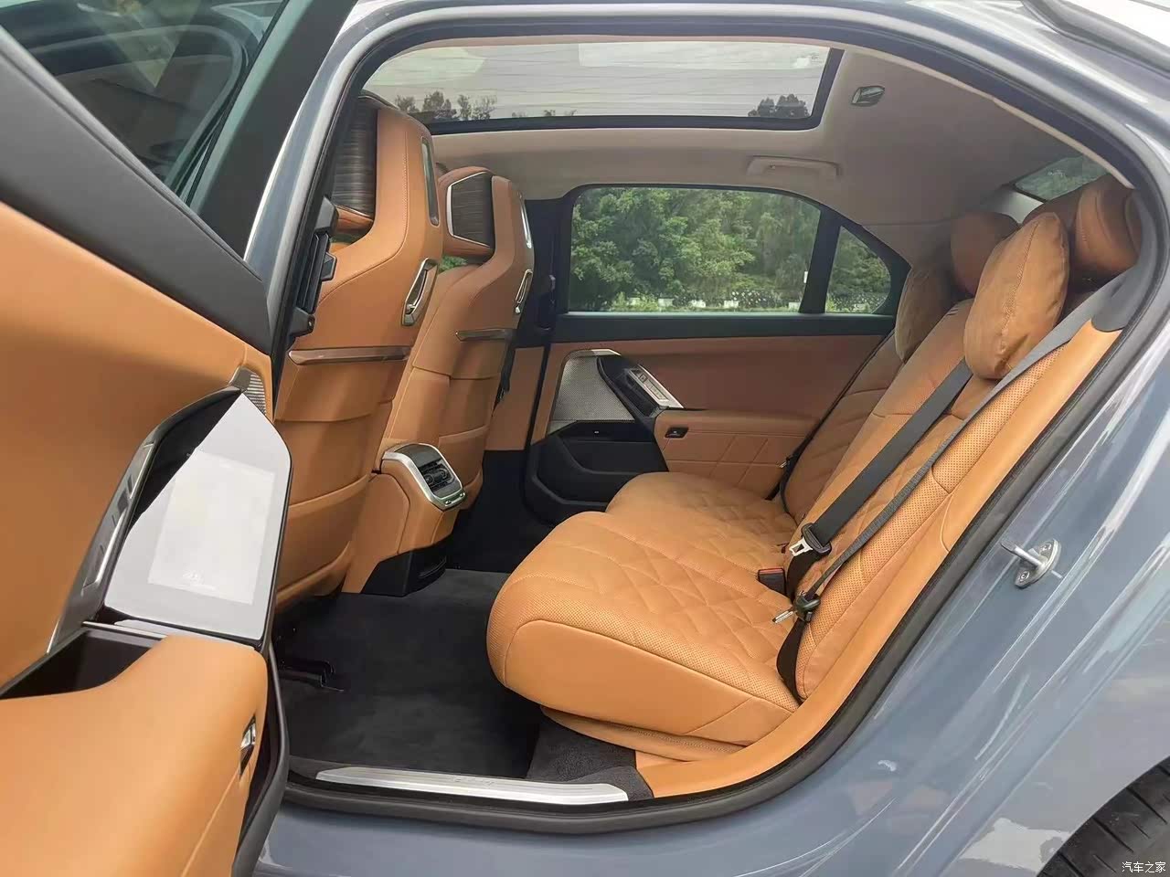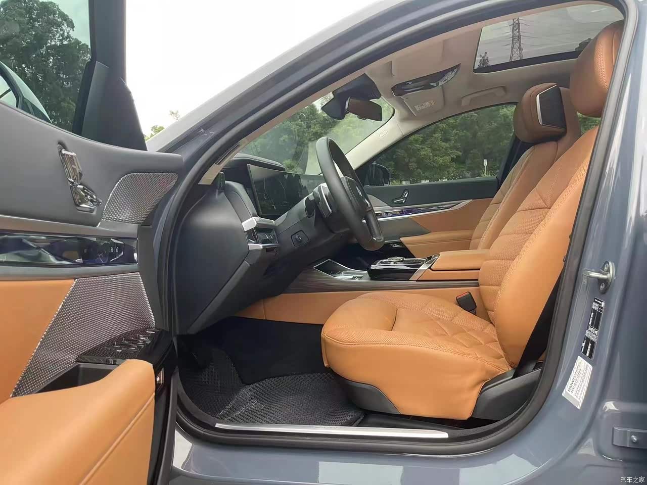 内饰配色是棕色,和车身相得益彰,材质用料高端质感细腻柔和,14.9英寸中控屏触感流畅。