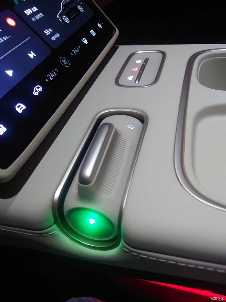 珍珠贝的内饰颜色很喜欢,档位键的设计很特别。座椅软硬适度,座椅加热、通风、按摩的功能很香,前、后排空调也很给力。全车隔音玻璃很人性化,关闭窗户时在香氛的加持下好像进入另一个安静、沉浸的世界。