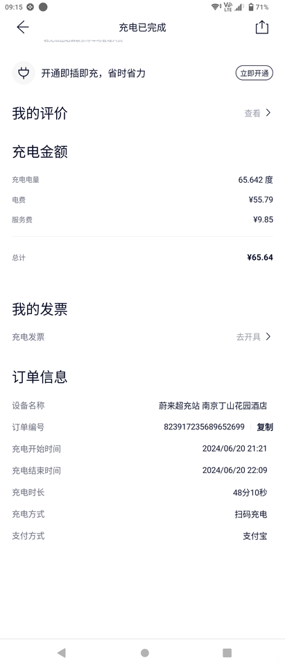 除了车款,另外两个前期花钱的大头,一个是车险,一个是安装家充桩。其实很多蔚来车主是不急着装家充桩的,但是我想着家充毕竟方便还是第一时间就装了。谁知电线拉了有100多米,安装费连桩一共花了9千多,算下来并不省钱。我这还是装的7千瓦,如果装11千瓦(小区电表是允许的),估计还要多花3、4千。羡慕电表离电桩近的车友。