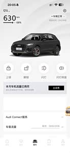 奥迪Q5L 2023款40豪华动感需通过一汽奥迪App实现远程控制,激活Audi Connect服务并完成绑车与实名制认证后即可使用,核心功能集中在用车模块,实用且适配多日常用车场景。 远程操控上,核心实用功能是远程锁车、解锁,平时没带钥匙或者下车忘锁车时,手机操作就能应急,不用跑回头路也能保障车辆安全;在大型停车场找车时,闪灯鸣笛功能特别方便,能快速定位车辆位置,不用在车流里来回找。 车辆监控方面,打开App会自动显示车辆上次熄火后的状态,剩余油量百分比和总行驶里程一目了然,提前知晓油量避免半路缺油的麻烦;还能查看状态列表,车门、车窗、天窗、引擎盖、后备箱等是否关好都能清晰看到,有异常情况会同步提醒,不用特意到车旁检查。 此外,App的辅助用车功能也很贴心,奥迪服务板块里的仪表指示灯功能,能解读车辆仪表上的异常指示灯,还会给出对应的处理建议,不用不懂就跑维修店;保养手册会标注车辆主要零部件的保养周期,能及时提醒按时维护,方便打理车辆。不过这些功能的稳定性会受信号影响,操作时建议确保车辆处于安全上锁状态,使用起来更稳妥。