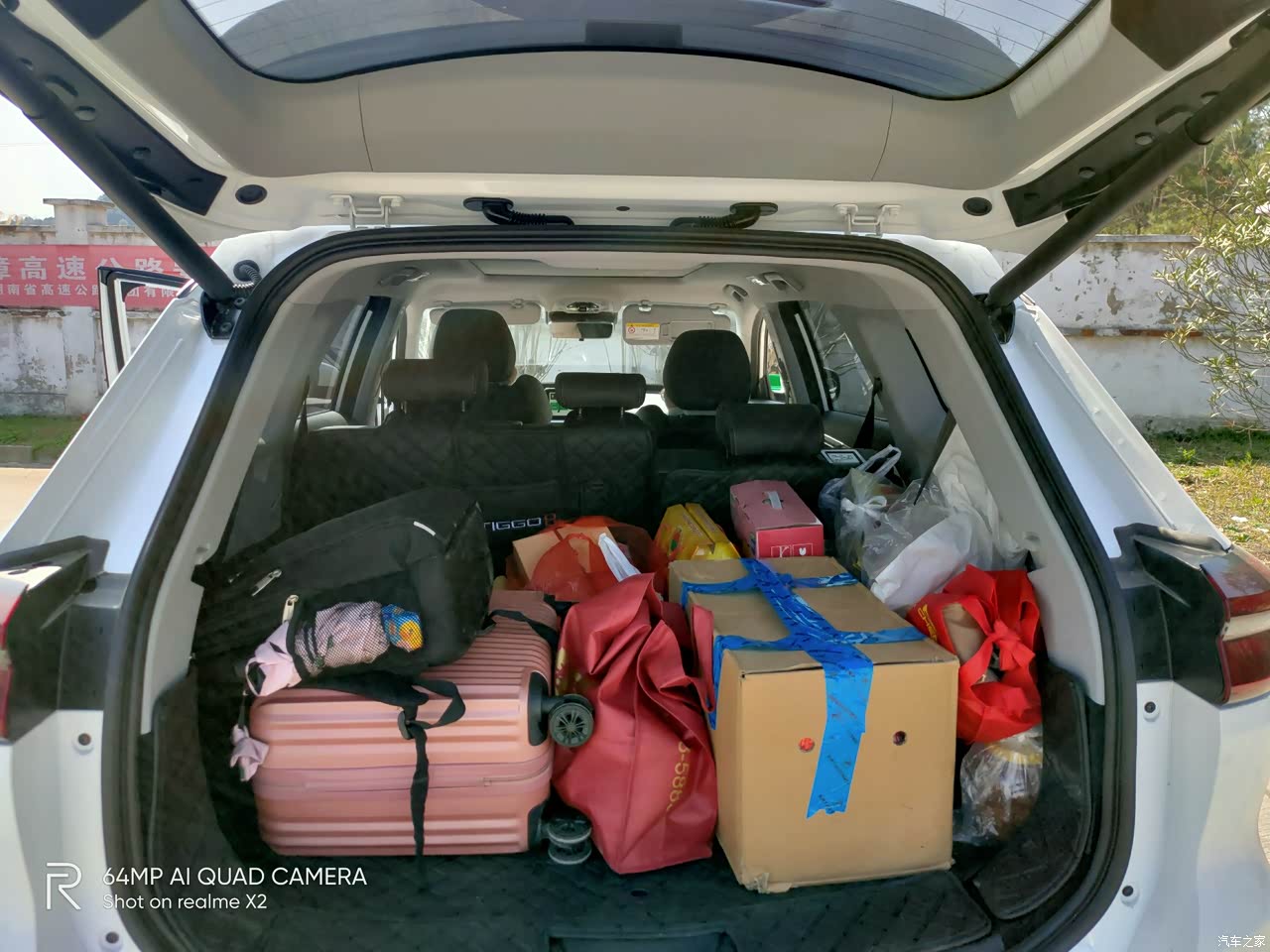最后一排放倒,空间无敌。 可装人可拉货。宽度再宽点就好了。后排放倒接近全平。后备厢空间也不错,而且还配备了挂钩和12V电源等实用配置,就是后备厢离地距离相对较高,搬运大件行李时会费力些。车内的储物空间也比较丰富,有多处人性化储物空间,方便存放各种物品。中控那里的扶手中间为镂空贯穿设计,也可以放一些小物品。