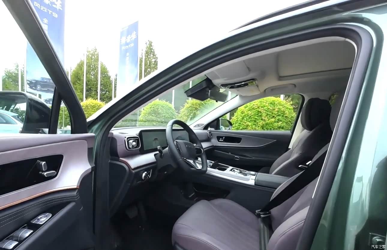 【内饰】:进入车内,风云T10的内饰设计营造出时尚、环保的氛围。仪表台设计简洁大气,中控的木纹设计增加了车的豪华感。中控区域配备了中控屏和全液晶仪表,以及HUD抬头显示,无线充电,整体布局比较舒服,上手很快。车内还配备了智能香氛系统、256色氛围灯等配置,进一步提升了驾乘体验。