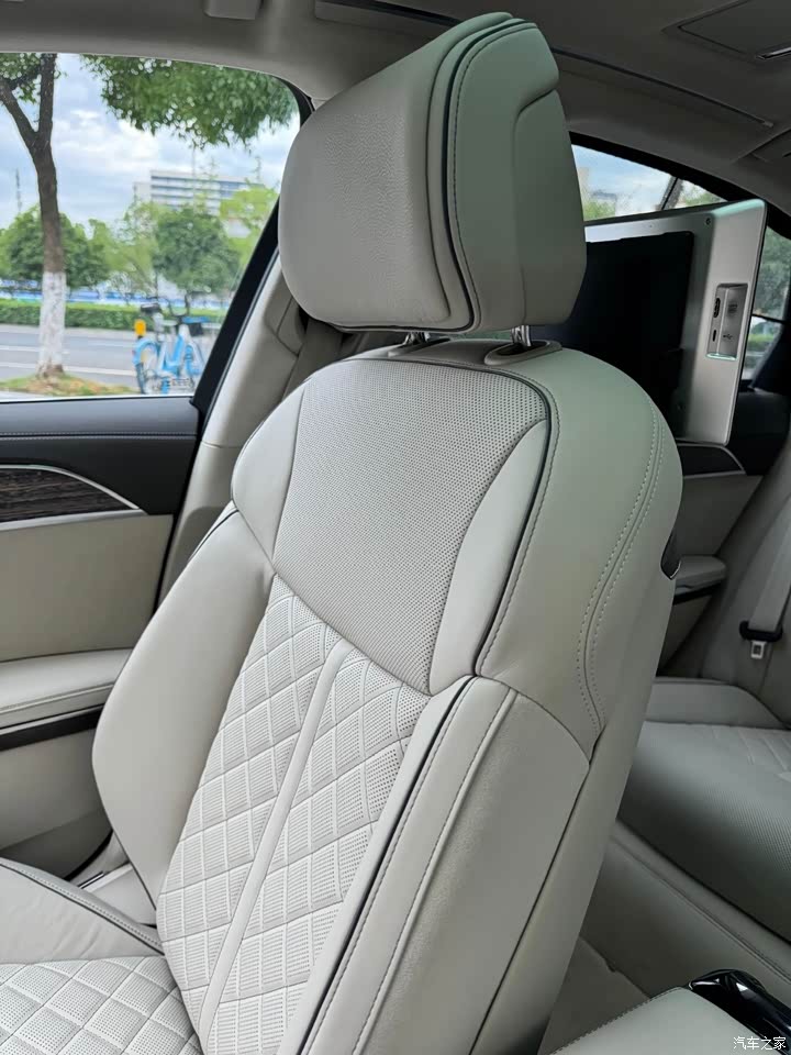 这款车中控屏幕是10.1英寸的触控液晶屏使用起来非常方便,方向盘是真皮的材质换档的形式是电子档把换档,座椅的材质也是一个标配的真皮材质,主副架做电动调节的前排座椅的功能,有加热通风和驾驶位有按摩功能,第二排座椅也是电动调节的,第二排座椅的功能有加热通风和按摩,做一个舒适度很高。