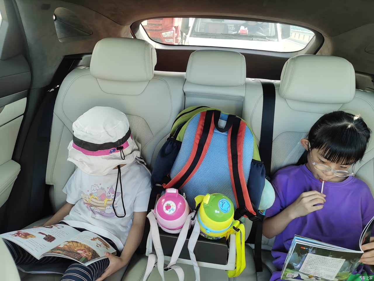 驾驶感受这方面很难直观看到,看图,我两个娃最喜欢在后排看绘画本,没有稳定的车身是绝对满足不了的。关键是:不晕车!不晕车!不晕车!