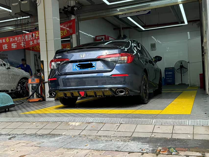 加了个前铲,后扰流,不想切原厂的排口气所以套了两个大排气管,看着不一样又感觉没什么变化😄,主打一个低调,暗金蓝装上感觉没有白色抢眼,但是没办法一眼就喜欢暗金蓝