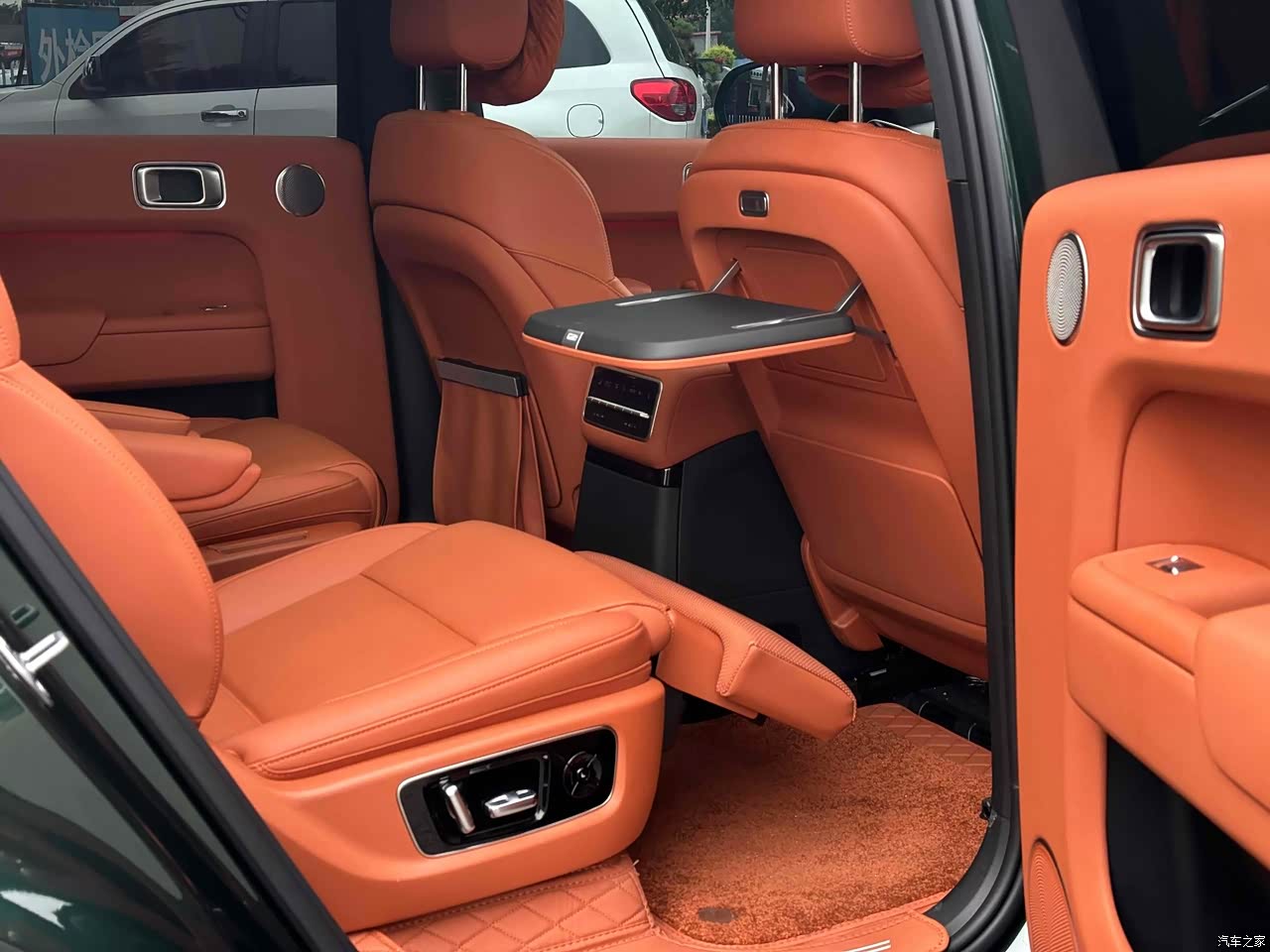 还是很豪华的,眼见之处都是比较好的材质,座椅的属实程度可以和单人沙发媲美了,坐着开车不累屁股也不累脚,透气性也可以。后排还有小桌板和娱乐屏幕,功能性的东西是拉满了的。中控台也有大屏幕,副驾驶同样有娱乐屏。整体配色也不错。