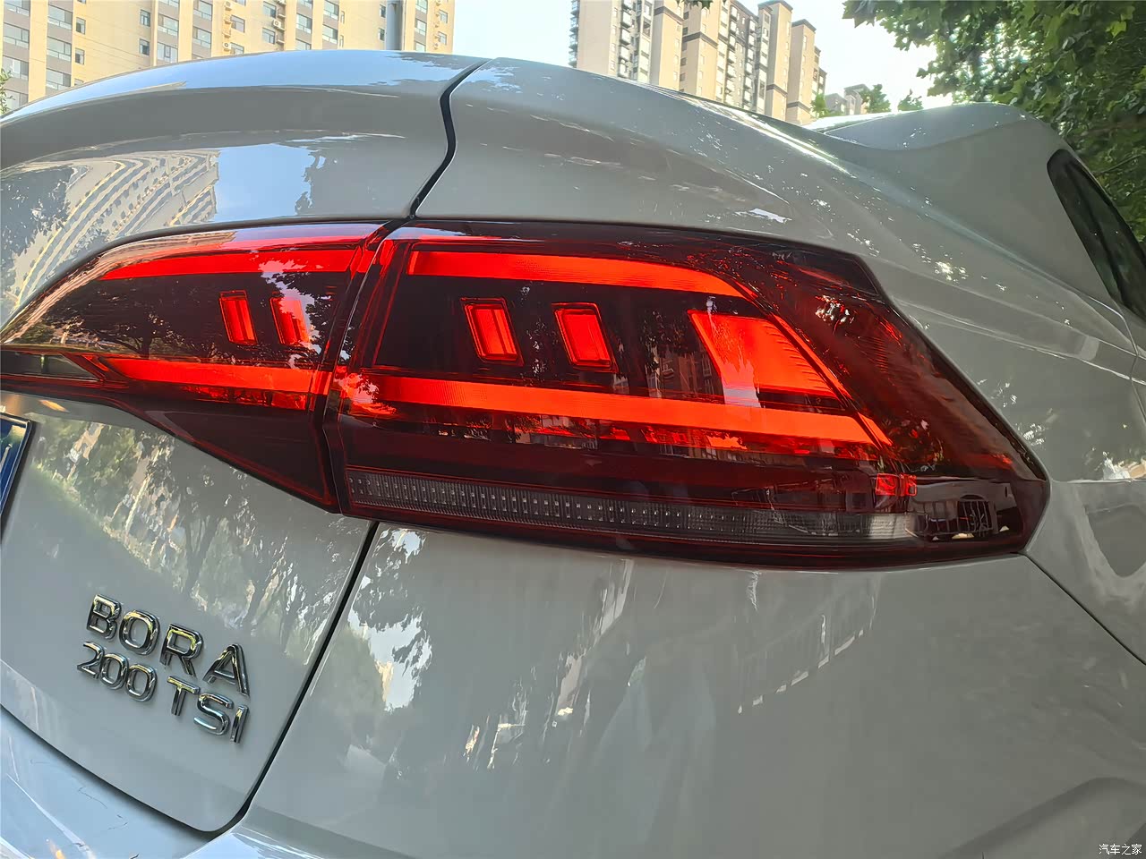 外形方面,之前老款的宝来是比较传统的设计,新款的宝来看起来就更运动一些,也更时尚一些,特意选择了白色,属于撞色调,显得车身更长也更宽,大灯和雾灯也都是LED的,还配置了大灯延迟关闭的功能,这是很实用,也是很人性化的功能。