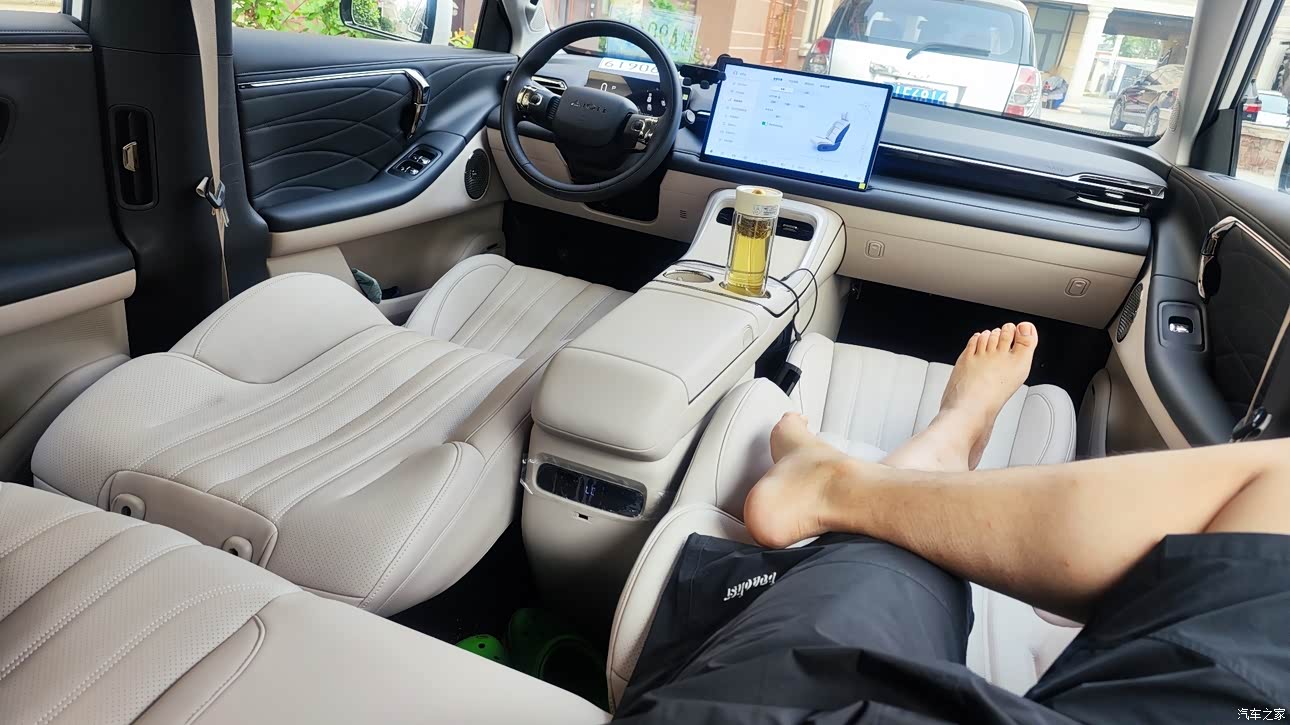 在埃安霸王龙后排叹美食胜过599元星级酒店下午茶 不是五星级酒店去不起,而是埃安霸王龙更香,后排小桌板可以解决宝贝用餐没地方放的问题。