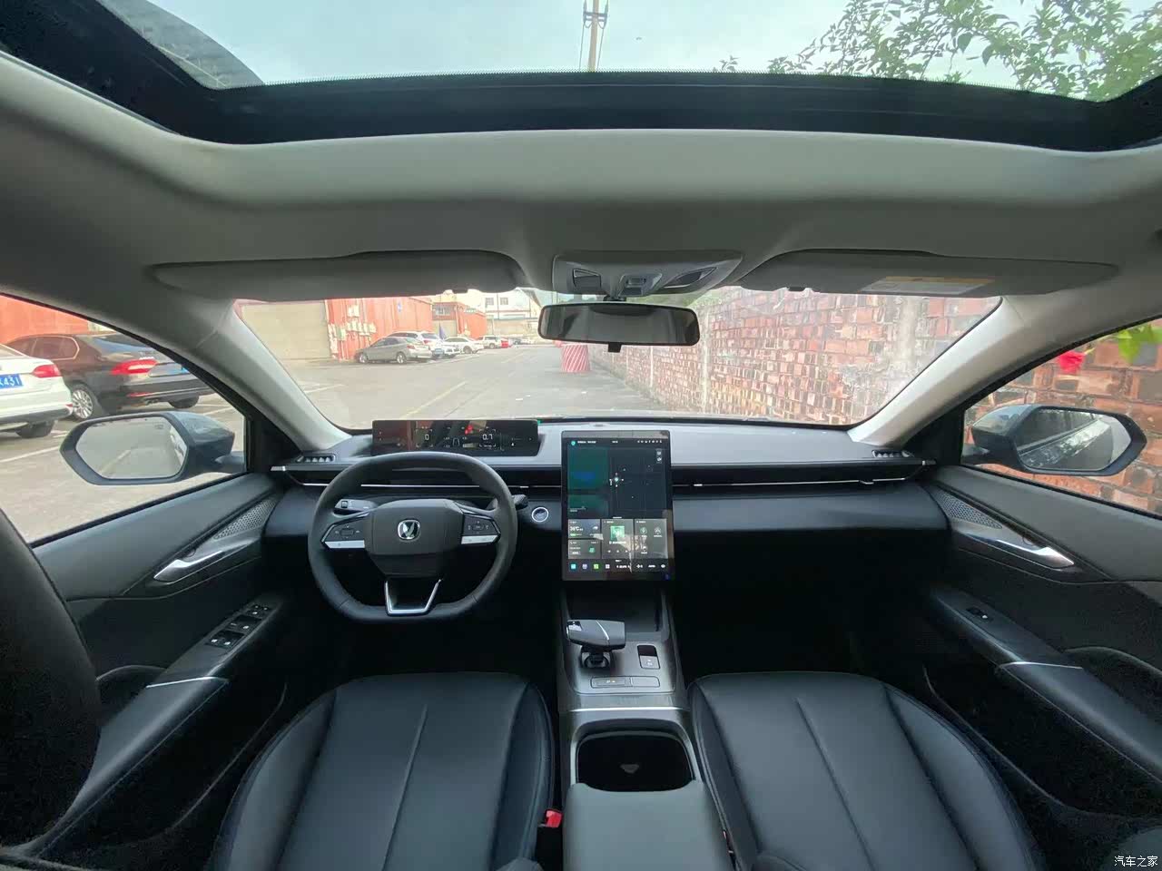 新款长安逸动的仪表盘10.25英寸,是悬浮式设计,设计在中控台上方,与驾驶人员的开车时候的视线更平行,而且更大更长,视线更清晰。中控屏幕则是竖版的13.2英寸,支持触控操作,能连接蓝牙、手机互联等。空调出风口在中控台上贯穿,整体简洁大气。
