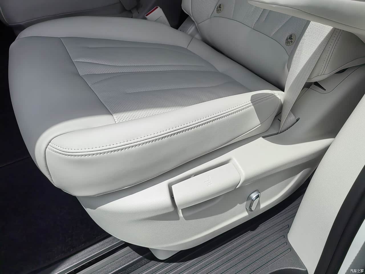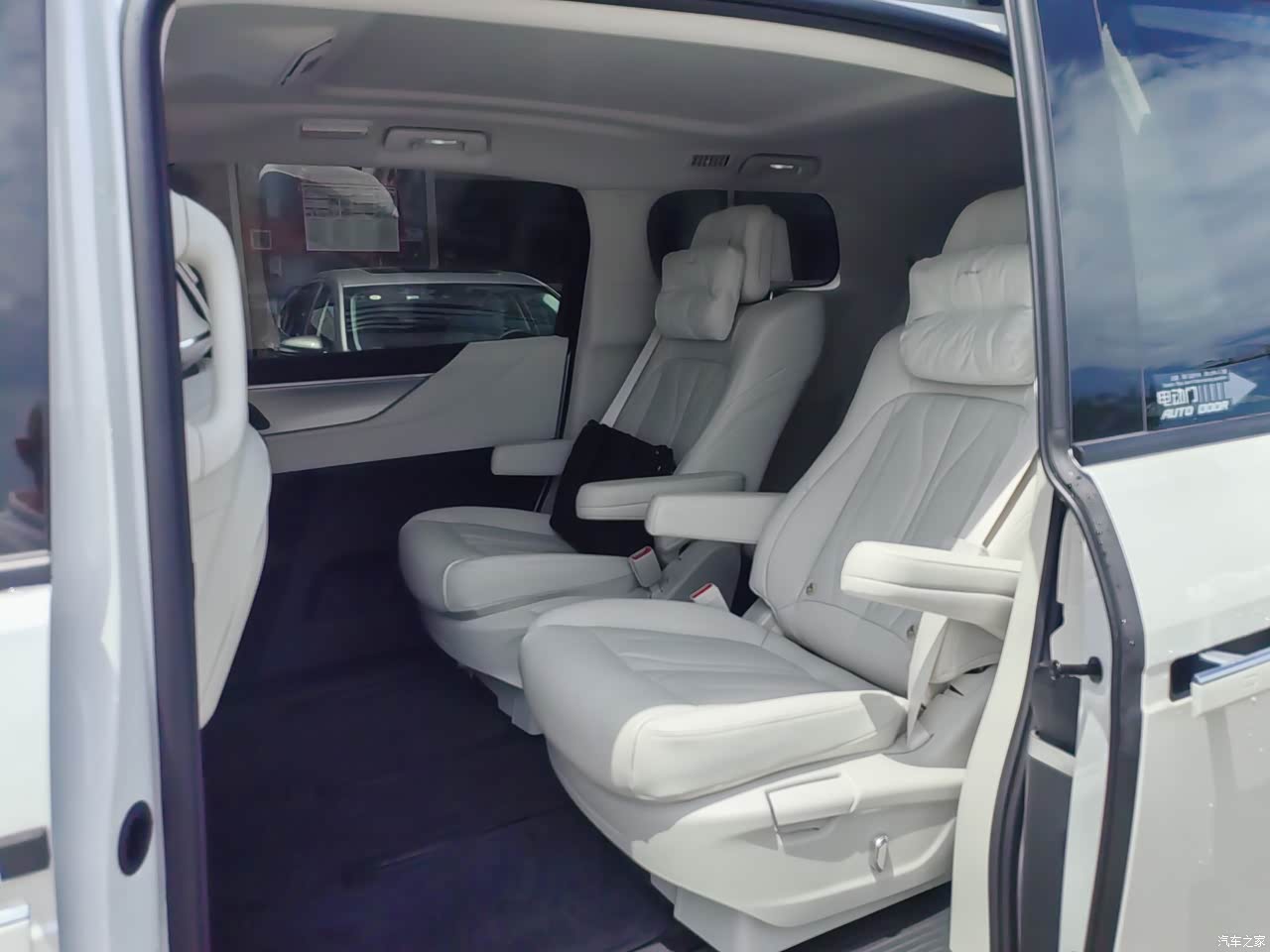 仔细的去用手去摸座椅,就感觉这个座椅的材质特别的柔软。而且身体的这个贴合感也可以,包括真皮座椅下面的海绵的支撑都是挺好的,座椅坐上去很舒服很带劲儿。新车没有什么味道的,可见它的这个材质用的都是挺环保。因为车子我买的多了,我所以会在乎这些东西。第1排的一个屏幕是30寸的一个大屏里面有音乐还有微博上面都可以去看,而且可以播放视频。