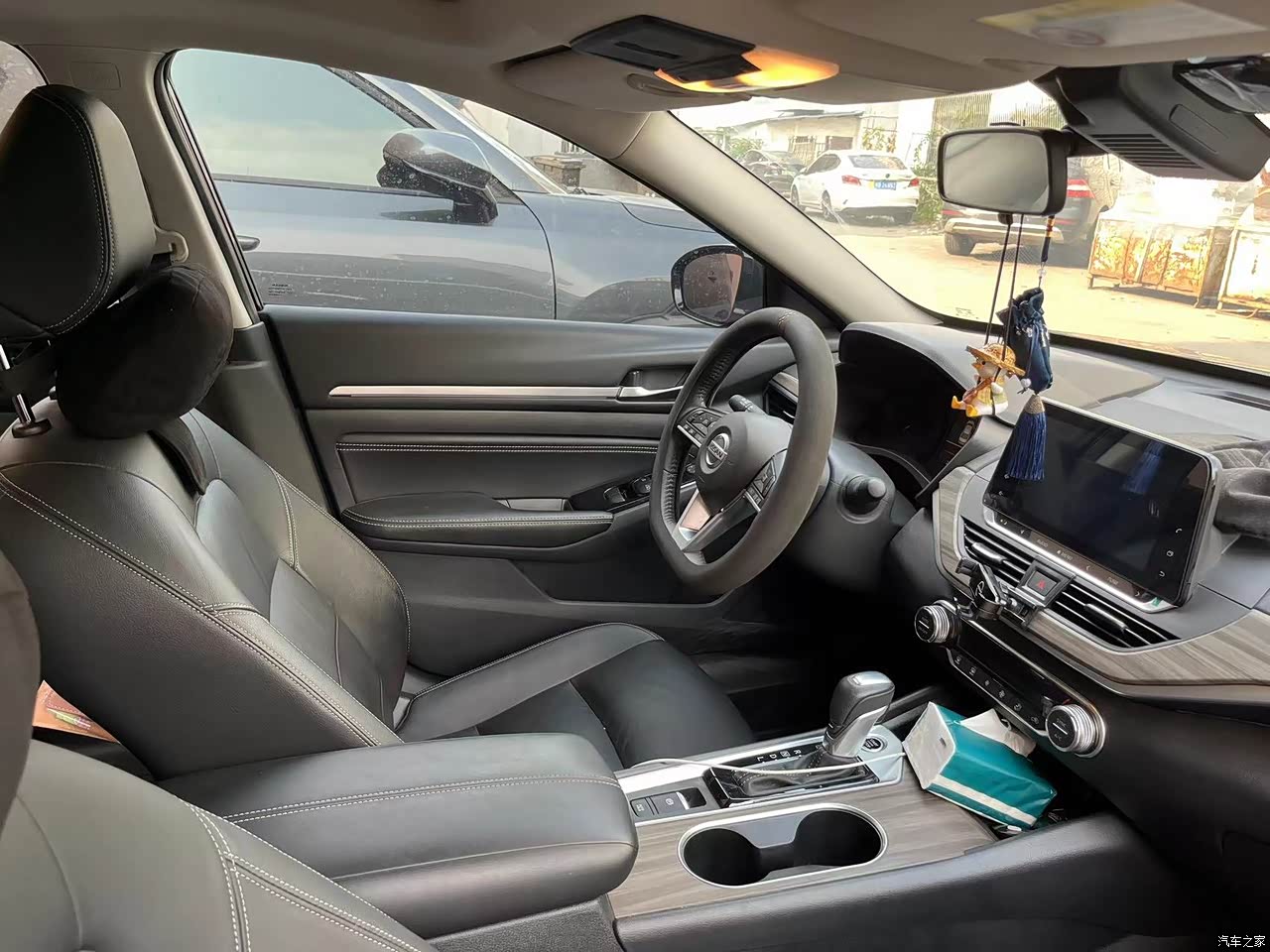 我的天籁内饰是黑色的。座椅是真皮的,坐上去那感觉真是不错。软软的但又有一定的支撑力,就算开长途,也不会让我的腰太难受。而且这真皮座椅看着就挺有质感,打理起来也相对容易。方向盘也是真皮的,握在手里很舒服。车内其他地方大多也是黑色的,整体看起来比较简洁大方。中控台的材质虽说不是那种特别高级的,但也没有那种很粗糙的感觉。车内的各种按键布局还算合理,用起来比较顺手。不过黑色内饰也有不太好的地方。比如在大太阳天,车里会特别吸热,一上车就跟进了蒸笼似的。还有就是黑色有点显得有点沉闷,不像有些彩色内饰那么活泼有活,总体来说我觉得内饰还不错吧。