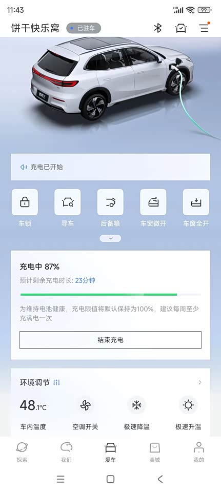 内饰是我和媳妇最喜欢这个车的地方。虽然买这个车之前几小时刚看过昊X品牌SUV那个全车翻毛皮覆盖的奢华感(库存车很便宜甚至可以说是竞品了),但这个车均衡又实际的配置还是让我们愿意打上满分好评。音响是我这次换车考虑的必须因素,绝对不能拉胯,同价位有一些配置很好的运动性车型那个音响居然能听出塑料感,太可怕了……相对于价格来说,这个音响是让我非常满意的。HUD也是意外惊喜,我前一个车有简单的HUD,本来是想着新车没有也行,结果E5这个HUD显示信息丰富清晰,日常也很实用,是我要重点表扬和推荐的配置。座椅通风也是实用且配置高(竞品还有一些单坐垫和单椅背的,体现在车价里的价格一点不比这个低),顶着太阳出游非常惬意。可开启天窗 电动遮阳帘,没得说黑科技了。我的前两个轿车都有天窗,我还挺喜欢开的。