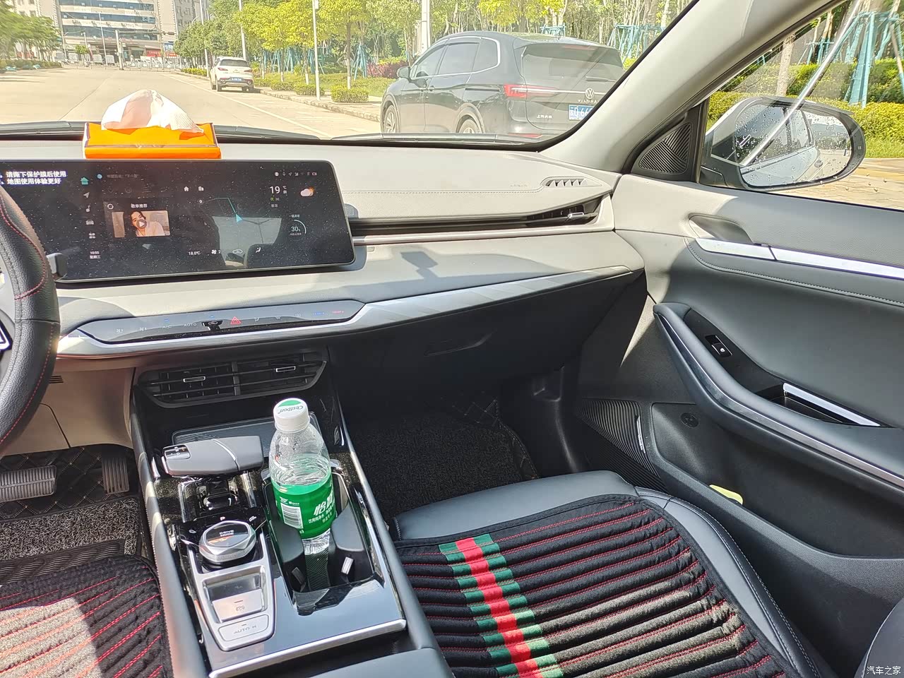 内饰大部分采用软质材料包裹,设计简约大气;座椅看上去有一种运动感,和门内饰板一样采用了仿皮材质,乘坐柔软舒适,表现出一种高级感。中控台显示屏显示效果清晰,触控精准且反映迅速。