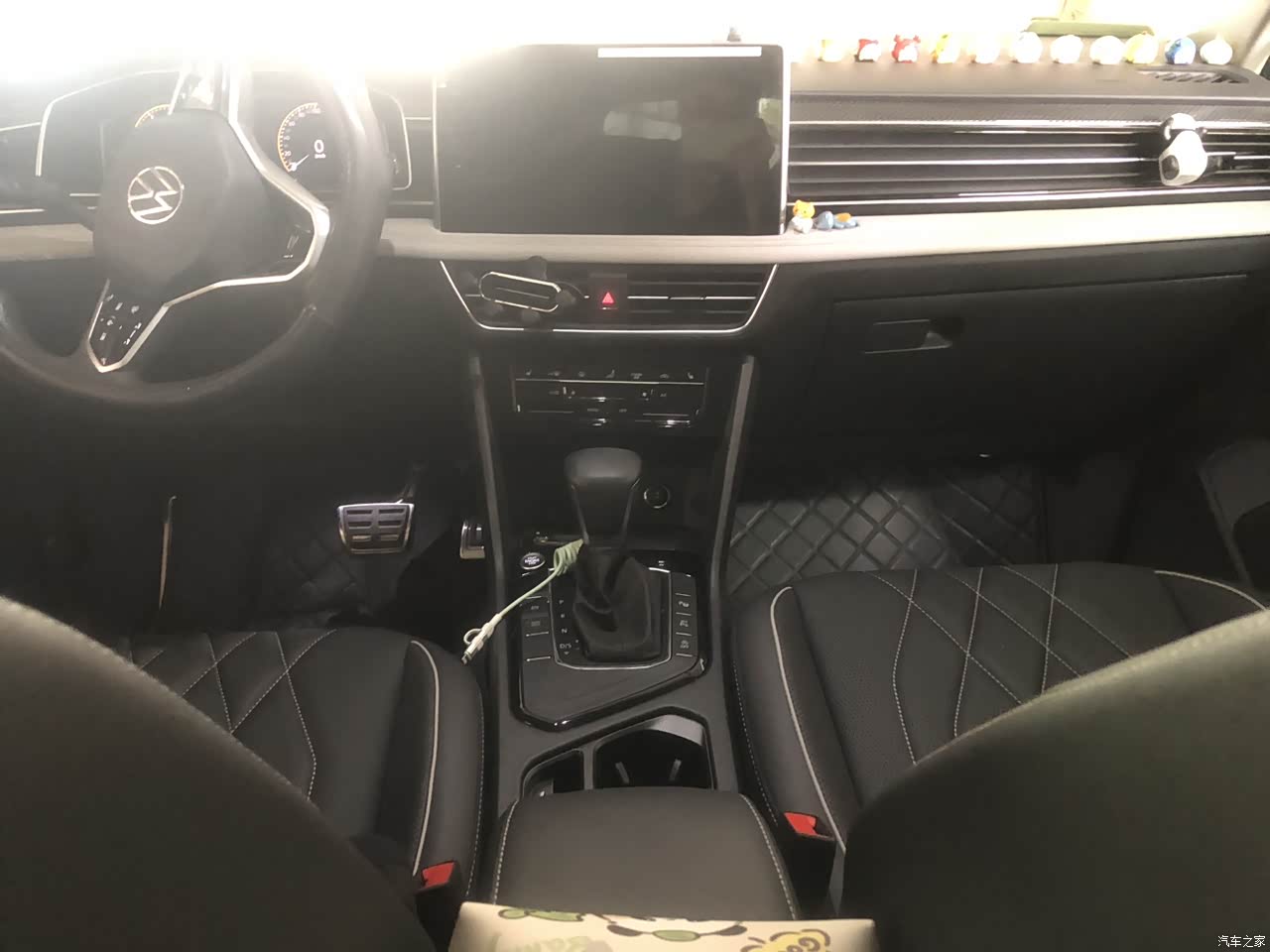 整个内饰方面我还是算比较满意的,首先就是他的座椅,花纹配色和个皮质都是很舒适的,并且没有什么大的异味,然后油门踏板这边都是有运动套件的,非常好看,前排的操控台布局很合理,车机大小很合适。
