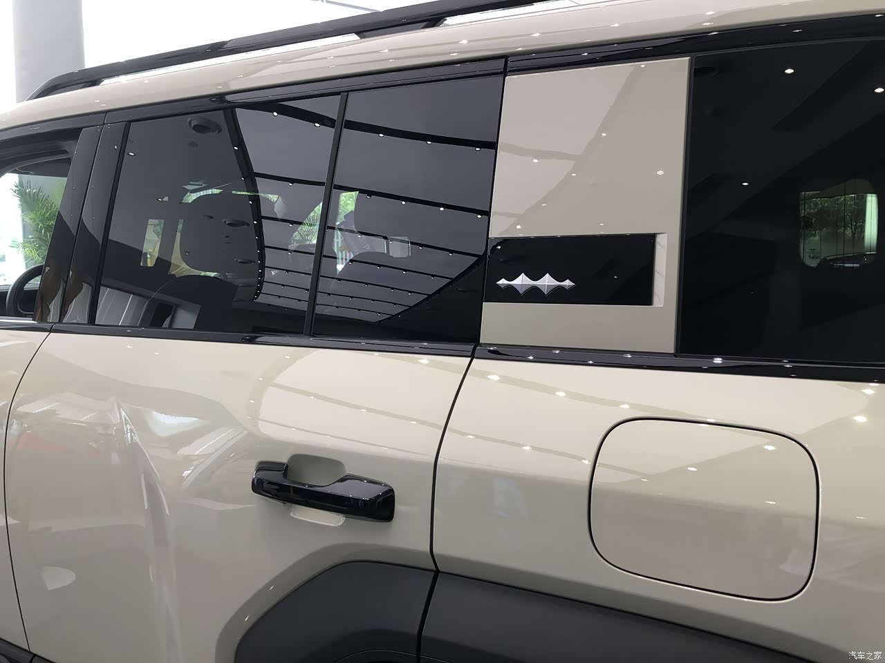 硬朗线条:车身侧面线条平直且硬朗,大量横向线条的运用营造出修长的视觉效果。这种设计不仅提升了车辆的力量感,还使得车身看起来更加协调、大气。 细节处理:门把手采用传统样式设计,围绕车身下沿的黑色护板粗壮硬核,野性尽显。同时,车身还配备了宽大的轮眉和防擦条,进一步增强了车辆的越野气息。
