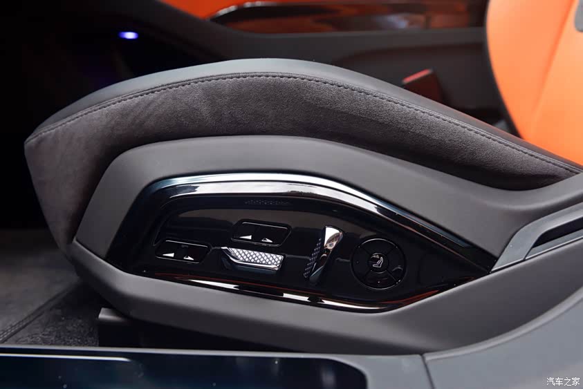 内饰橙黑双拼配色,时尚简约,科技感十足。本来路特斯一般不谈什么舒适性,可是这车还真的可以讲讲。3.1米的轴距+纯电车与生俱来的安静+行政四座给到四个座位都有加热、通风和按摩+23扬声器音箱,闭上眼睛,开着空调,听着音乐休憩一下也是一种享受。