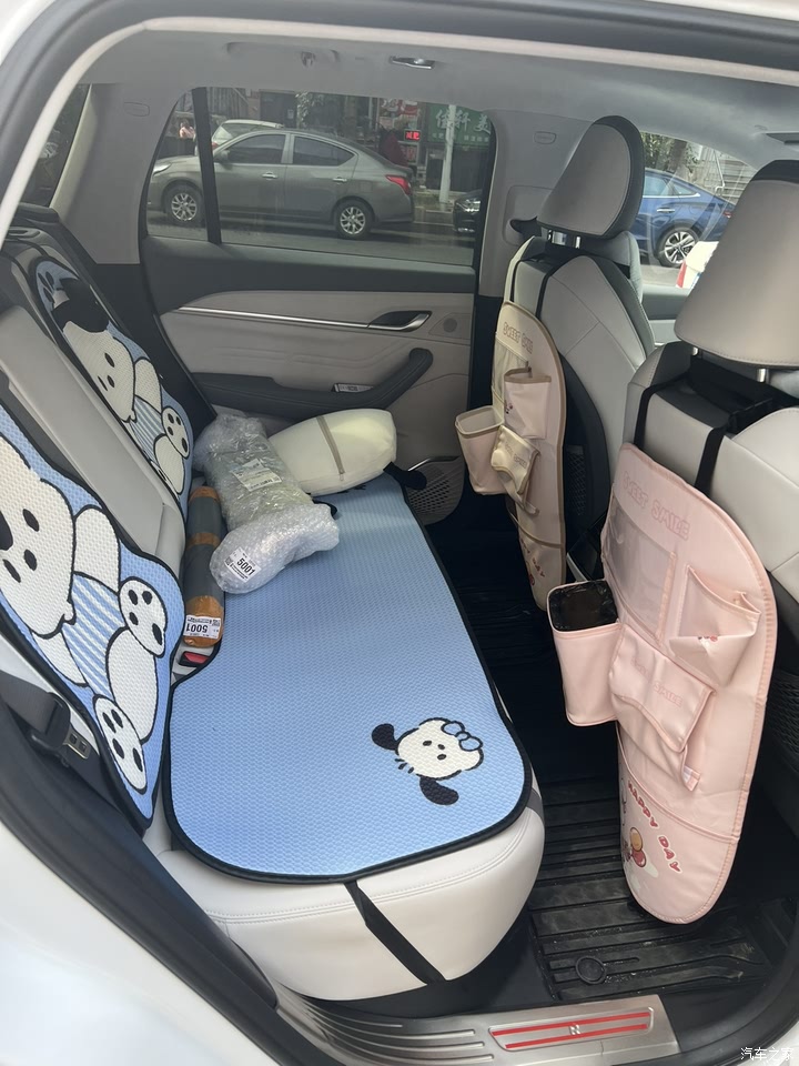 内饰颜色我很喜欢,东方既白名字好听配色也很适合我,真心不错,东方既白整体是灰白相间,而且整体搭配很用心,容易脏的位置是深色,不容易接触的位置大部分是浅色,这款颜色很适合我的审美 空间:别看定型是紧凑型,但实际上可一点也不紧凑,空间非常够用,尤其是我从轿车到它,那体验跨度非常大,感觉真心很宽敞,尤其是后排坐上去很舒适,感觉比前排还舒服前后俩排正常坐一点不挤,很舒适很宽松,相对的后排更舒服些,而且座椅放倒后直接可以放张床,简直完美,出去旅游应该很不错。