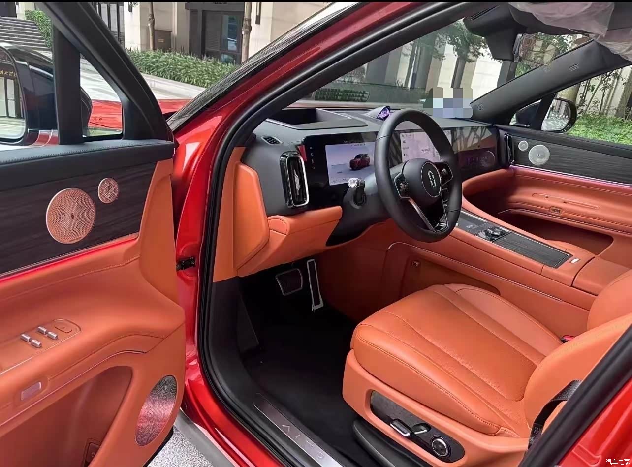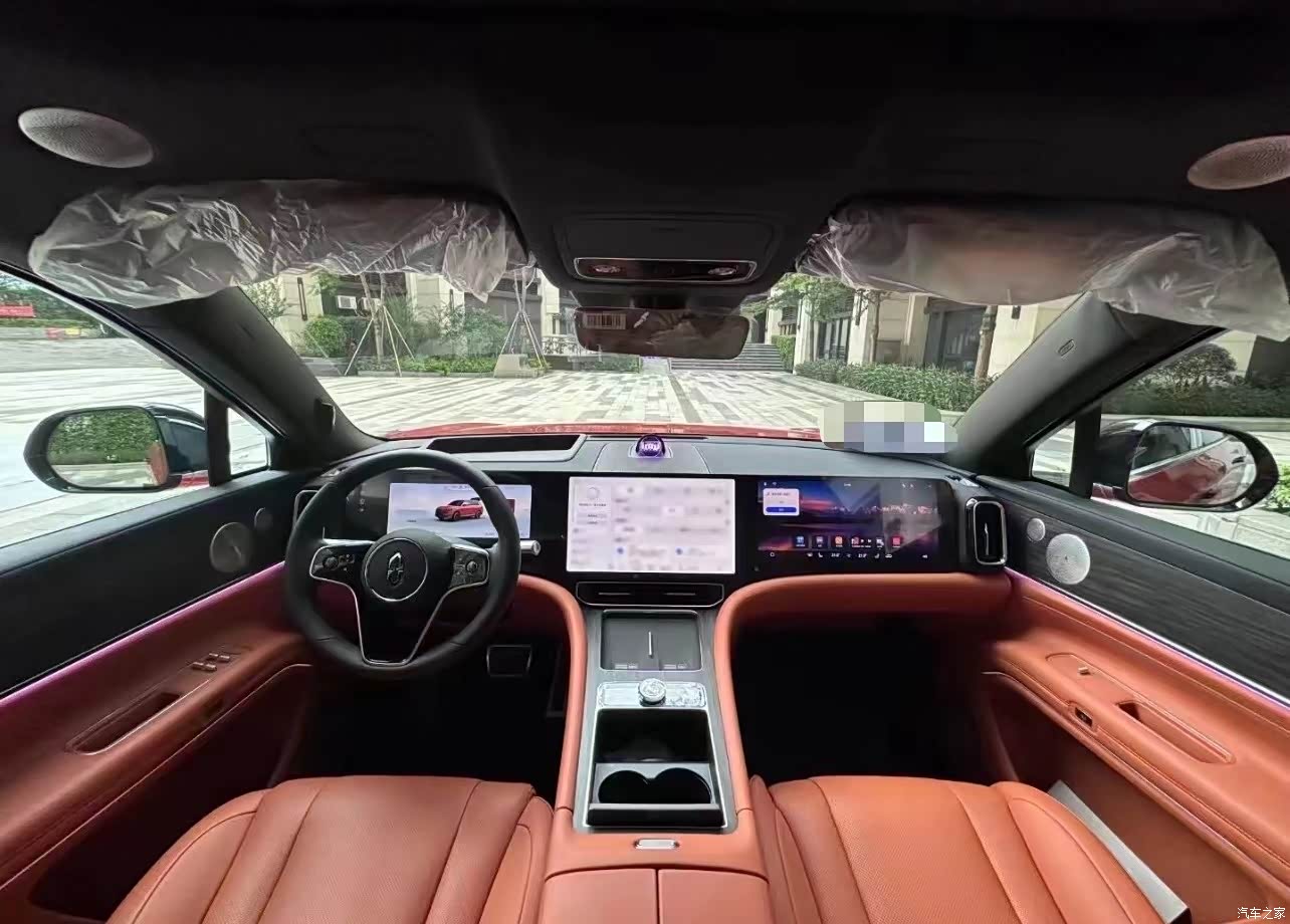 内饰用料特别好,中间三块屏幕,点亮以后视觉效果其实没那么好,有黑边。方向盘的手感不错。整体设计的比较简约大气。内饰颜色我选的赤茶橘正好和外观橙色呼应起来,看起来很协调。