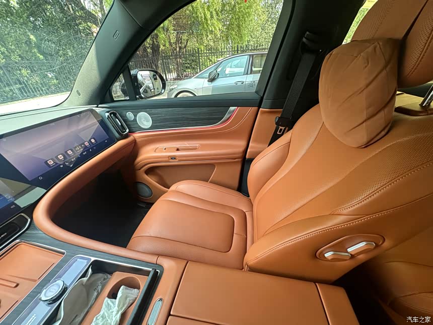 内饰我选了橘色,觉得耐脏,座椅很软做起来特别舒服,尤其喜欢二排的感觉,副驾折叠起来,坐在二排瞬间感觉自己是老板,三连屏开始的时候不是很喜欢但用起来越来越觉得很棒很方便,空调我调到最低挡25度,还觉得凉飕飕的冷,制冷效果没得说。座椅加热还没用过,座椅通风很好 夏天会让身体不舒服 打开座椅通风瞬间凉爽。