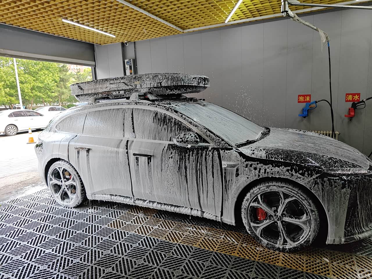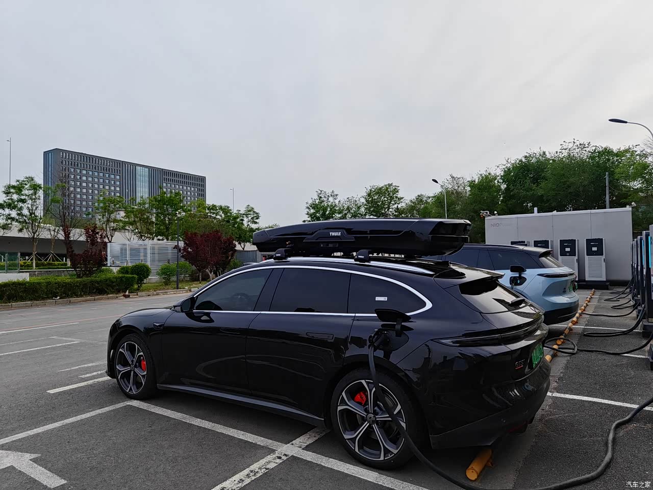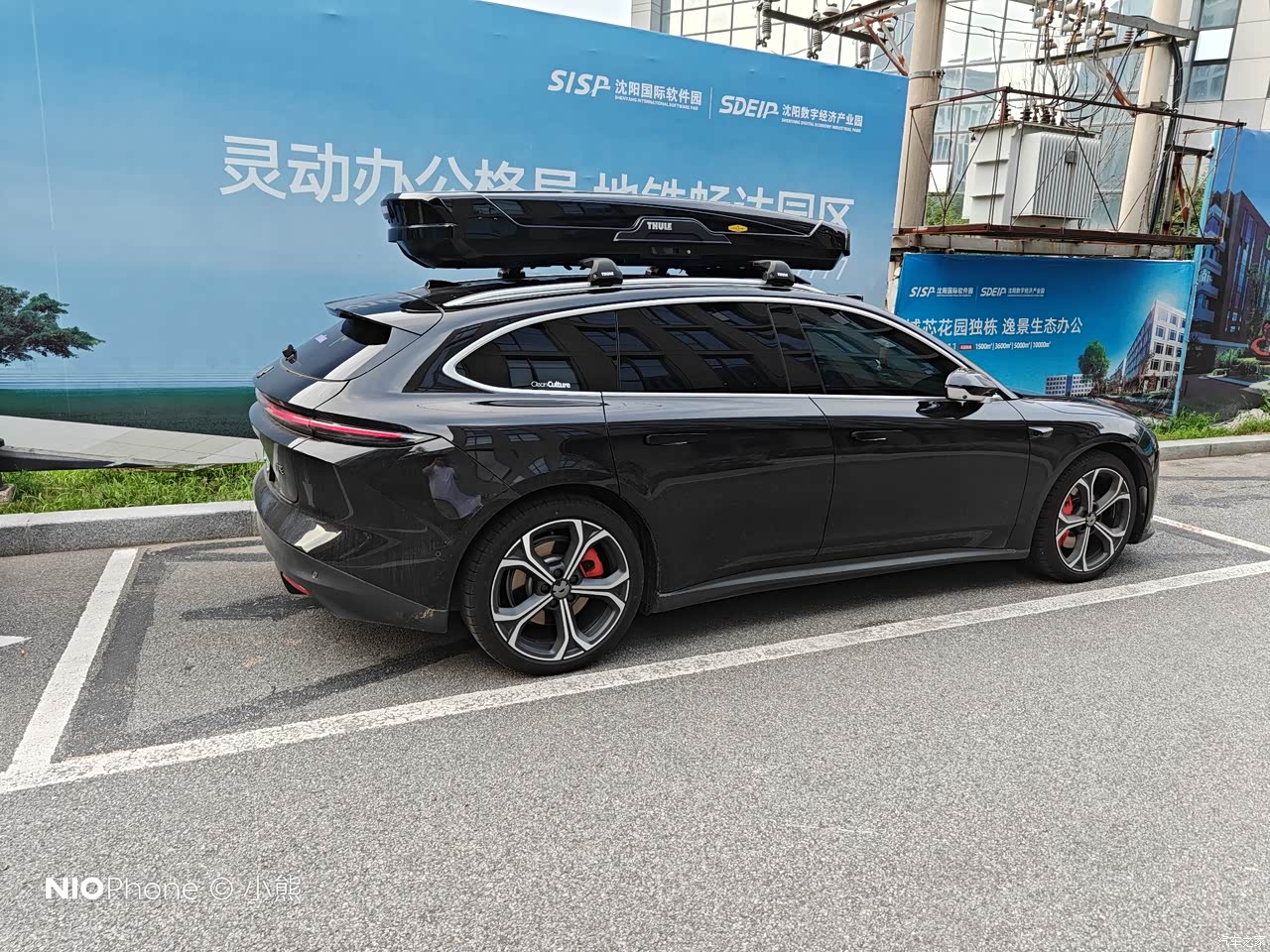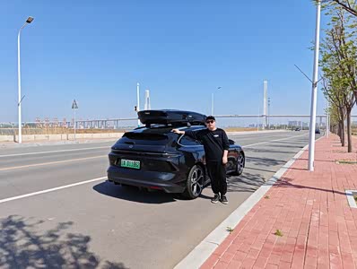 如果说其余项存在争议,那么外观,绝对是5T最最无可争议的点了,其实到下定最后的时刻我考虑的还是5t和001,001配置确实很顶,但是外观调性粗狂运动是一个十足的肌肉男风格,我实在喜欢不来,如果是在25岁以前可能会喜欢那种风格吧...5t黑色综合来看外观内敛而不张扬我认为是符合90%的国人审美的,尤其从侧后看线条很棒,如果非要吹毛求疵就是屁股再长些就完美了,那么是不是将来还可以对ET7T稍作期待呢。因为我看了很久的车,因此在下定5T的时候,很多方面做到了未雨绸缪,车顶行李导轨是我的必选之一,行李架和车顶箱也都在车还没到的时候,就已经寄到蔚来交付中心了。提车的第一天,我的ET5T就背上了书包,作为旅行车只有背上书包才是完全体,不管姿态和角度看上去都是满分。