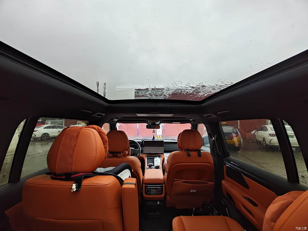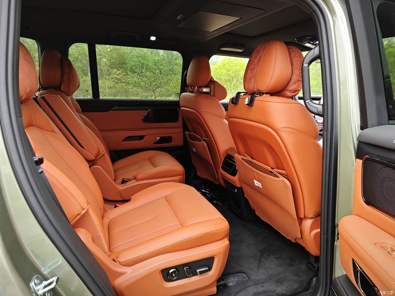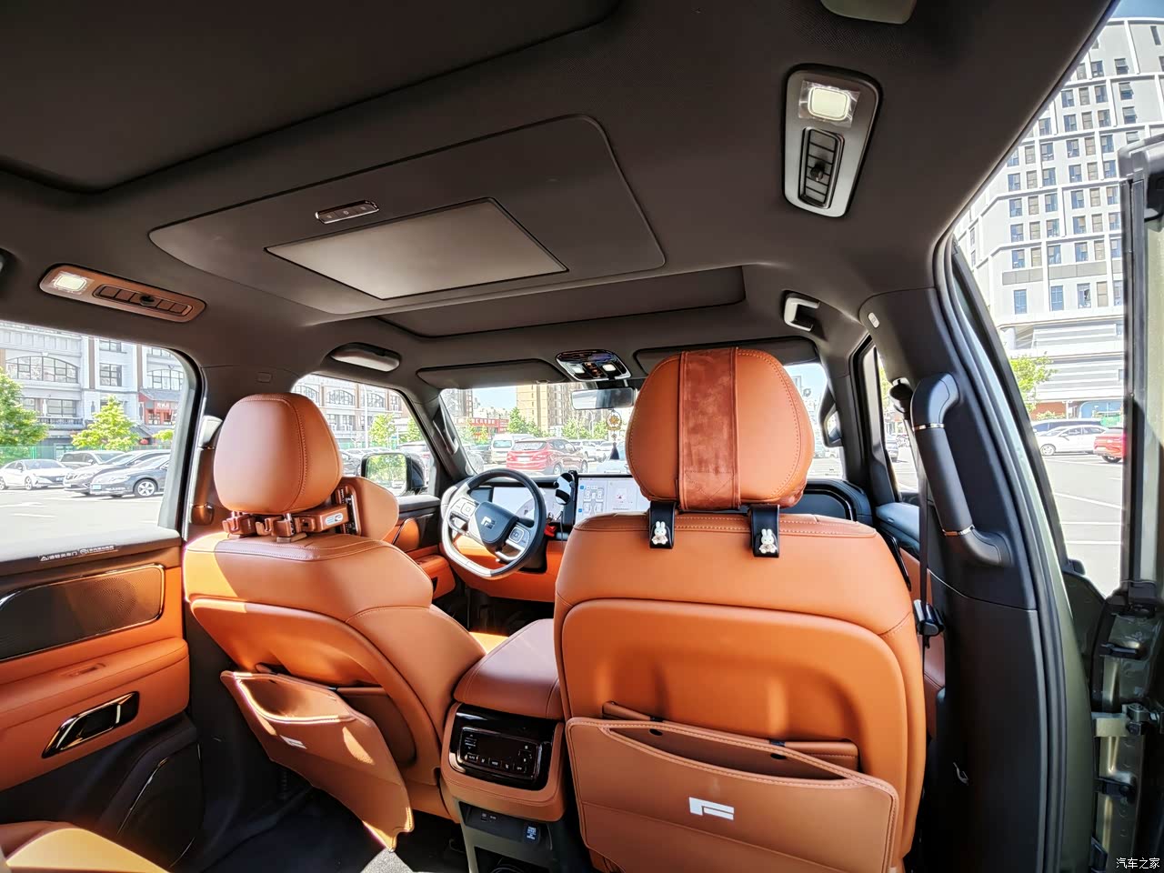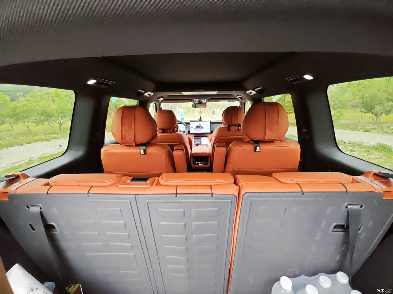 极石01拥有一个超级,超级,超级大的全景天窗玻璃,不管你是在二排还是在三排,都可以看到天上的风景,如果你晚上是在车里露营的话,你可以看到满天的星星
