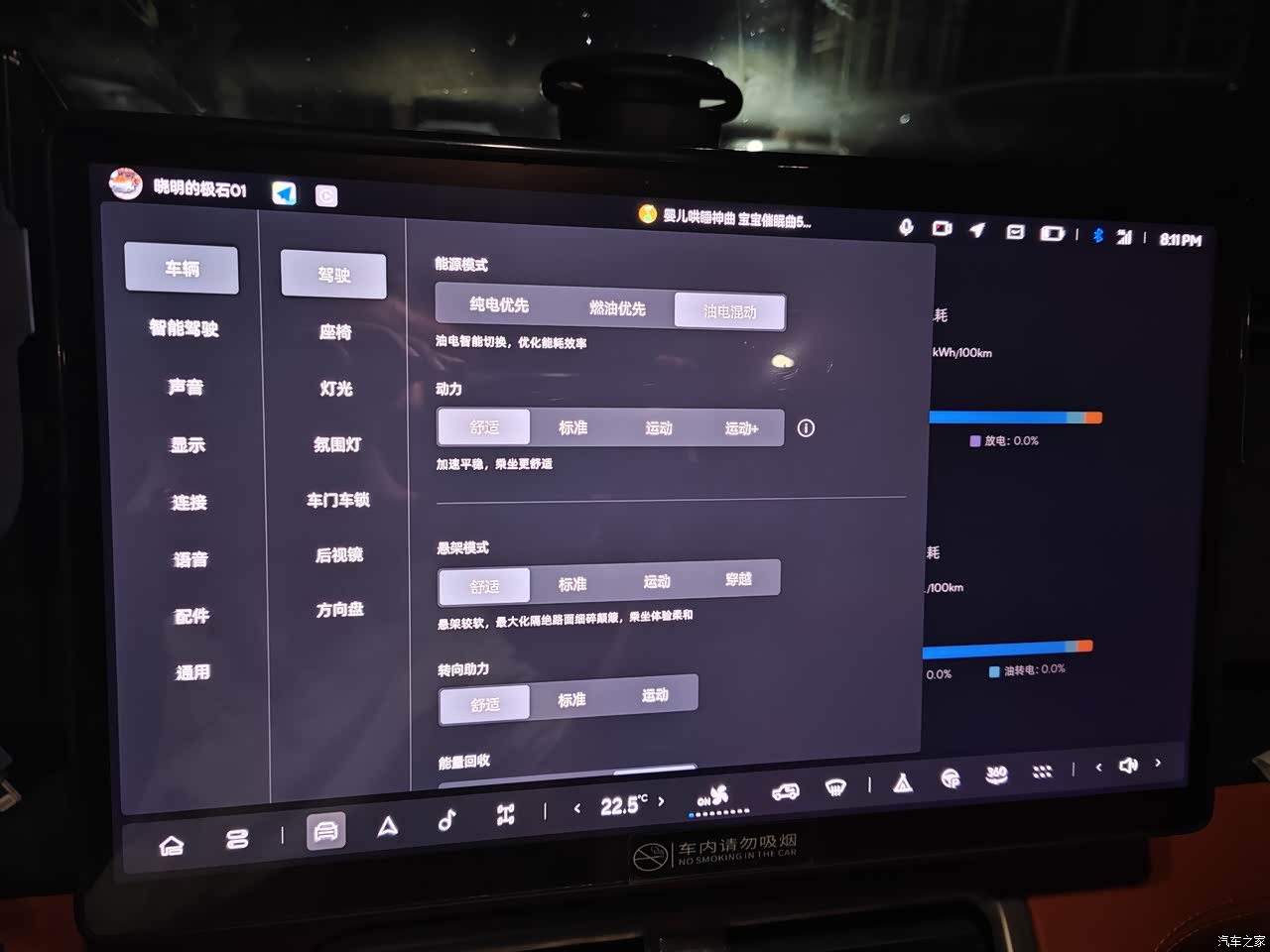该有的智能配置功能都有,比如ota升级,全景影像,轮胎的影像,自动驾驶,自动泊车,流畅度可以,就是语音控制不是特别的智能,没有家里的小爱同学聪明,官方的说法是要简单直接,这样更安全