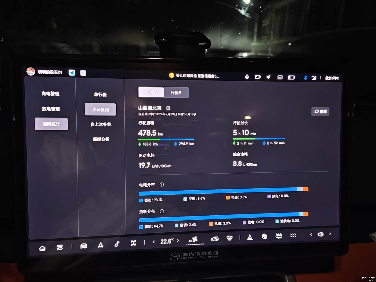 上次从山西到北京,用的油电混合模式整体跑下来8.8个油,平时在市区都是用纯电续航,每天上下班差不多一周充一次电,58度的电池还是挺耐泡的