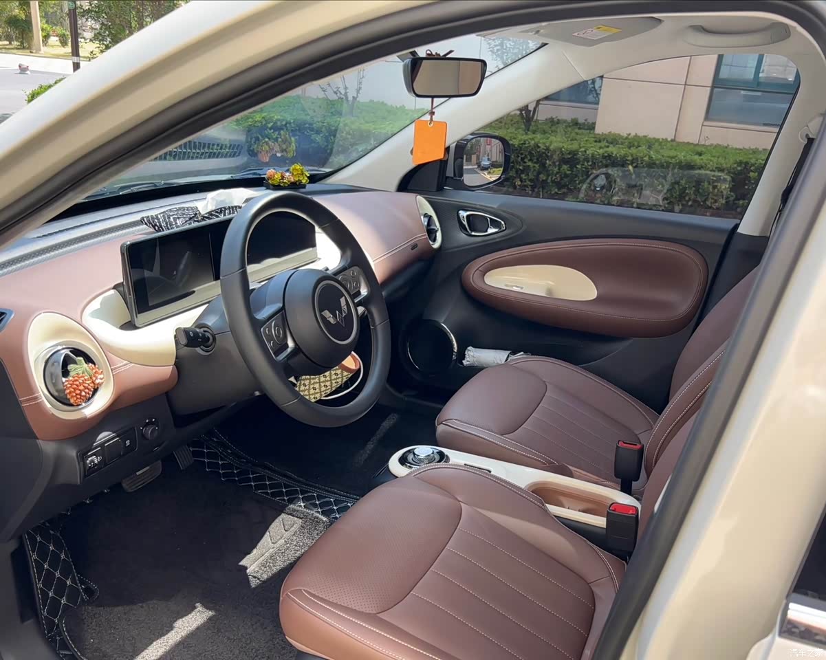 内饰有轻奢精致风,中控台把大屏和空调面板整合,高亮烤漆加持带来陶瓷釉面质感,双 10.25 英寸悬浮高清大联屏清晰好用;车内设计风格较为年轻化,颜色搭配符合流行审美。 五菱缤果的内饰设计简洁实用,中控台布局合理,操作便捷。座椅采用皮质材料,舒适度较高,且易于清洁。车内空间布局合理,乘坐空间宽敞,储物空间丰富,满足了日常家用的需求。