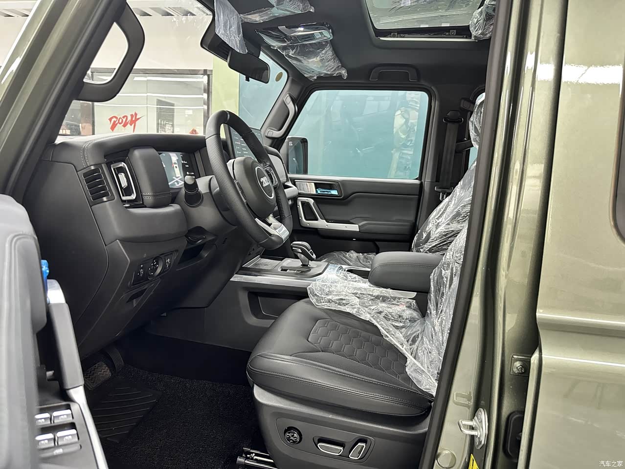 我去探车是新212属于盲订阶段,北京没有试驾车。接待销售着车后让我们静态感受新212的澎湃动力。 东安动力2.0t发动机搭载8AT变速箱,最大功率达185kW(252马力),发动机声音沉稳不闷,还是很有越野车的硬派感。坐在车里噪声也不明显,能感受新212静音做的不错。期待后续有现车试驾。 另外,BJ212还是国内第一款量产的硬派越野车,前后都是硬桥,这一点算是比较有竞争力。分时四驱系统支持高、低速四驱切换。不过,我比较期待的是运动、沙地、泥地、雪地这4种模式的实际表现以及陡坡缓降、启停、前后差速锁等功能。毕竟,我这台大狗是1.5动力,山地爬坡还是挺肉的,有时候比较高的坡都不敢上去,生怕卡在半路进退两难。
