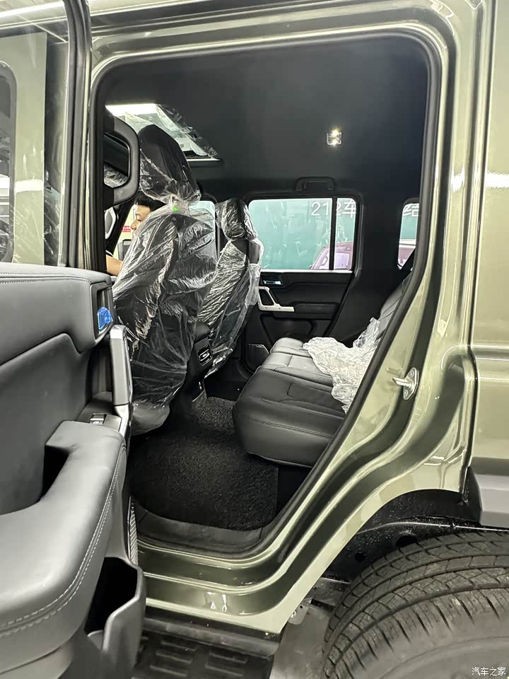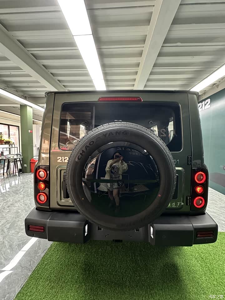 空间上,新212长宽高分别为4705/1895/1936mm,轴距为2860mm,达到一个中型SUV水平,比我这台大狗要大。但是空间的表现并没数据这么漂亮。由于主打越野,为保证通过性底盘较高,会牺牲一些空间。 本人身高158,体重46kg上下,前排入座和后排入座舒适度还是不错,后排端坐头顶有一拳富裕,膝盖与前座有两拳距离。 但对于身高以及体型稍微大一些的车主而言可能舒适度没这么高。同行看车的另一位大叔,身高178左右,体型微胖,入座后排稍显局促,头顶距离只有2指宽,膝盖与前座也是还有2指左右距离。不过呢,大狗的空间表现也一般,都没有十全十美吧。 后排座椅可以放倒,这一点还挺方便的。后备箱是侧开门设计,门尾的储物隔挡板支持拆卸,储物空间比大狗表现要好,基本上是够用,拿取东西也都比较方便。 车尾还预留了户外越野车台天线、越野旗涉水喉、车尾拖垮等加装接口,很贴心,也能感受到功能属性非常强,还自带2500km的牵引重量。