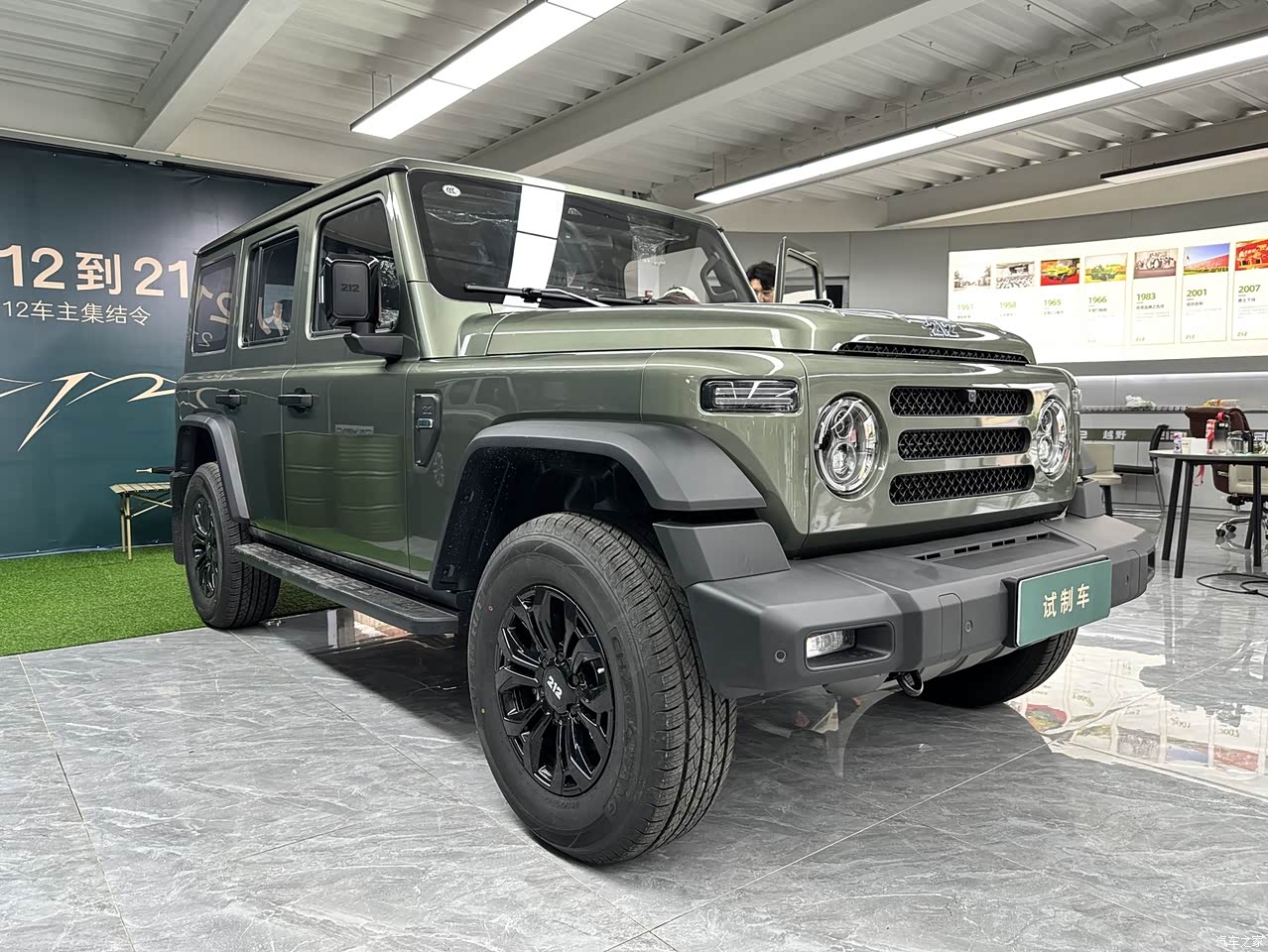 众所周知,212是国产越野鼻祖,全新2024款212是经典的方盒子造型,前脸保留了蚌式发动机盖、防空灯的经典元素。 在传承经典中,这款车也有一些创新,大灯组是由双透镜和圆形LED灯带组成,再配上LED转向灯,复古中多了一丝潮流。 厚实的前保险杠与轮眉尽显硬派越野风范。从侧面和背面看,“方盒子”造型也有点奔驰大G既视感。总之,进店第一眼就被那复古、硬派的越野风吸引。 车身的细节做的比较好,车身材质做的非常厚重,有硬派质感。