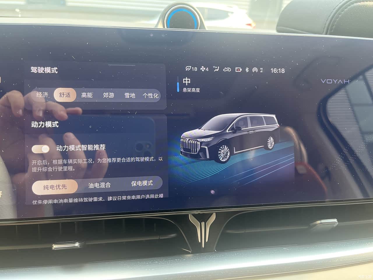 双电机四驱,综合扭矩800多牛米真不是盖的,加速超车太轻松了,高速跑120,舒适模式下一脚油门轻松超车。这还车上坐了三个大人一个孩子外加一些行李的情况下,拐弯时得益于空悬,可以抑制侧倾,让车辆平稳过弯。 悬挂是空气跟电磁组合,能很好的抑制刹车点头,平时的小减速带,小坑啥的都是轻轻松松应对,坐着不会太软,像船一样来回晃的情况没有,并且打开高能模式后,会变得很紧实,路感变得很清晰,方向盘会变重,超车加速给人很足的信心 方向盘在舒适模式下很轻,开久了手也不会酸,在郊游模式下底盘会升高至离地比较高,走起烂路来不会拖底,并且还有方便上车功能,打开后每次第二排上人时,悬挂都会自动降最低,老人孩子很轻松就上车