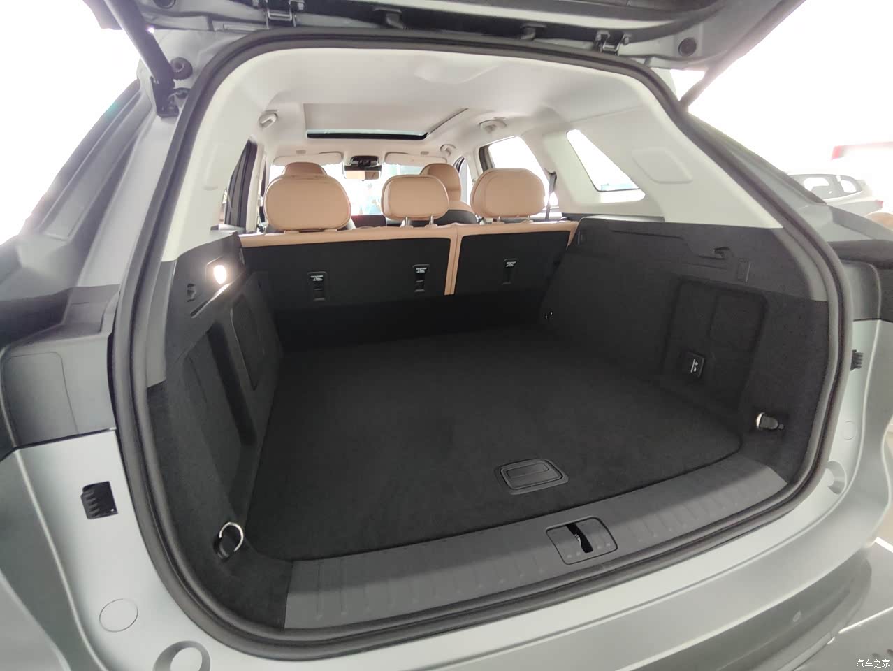 本人180的身高坐在驾驶位脚部空间和头部空间都非常富裕,而且在调整完之后二排空间还有一拳多的距离。同时还拥有过超大的后备箱空间,将二三排座椅放倒,即可实现超大的行李箱容积,足够容纳30个行李箱,可在户外露营时秒变“大床房”。