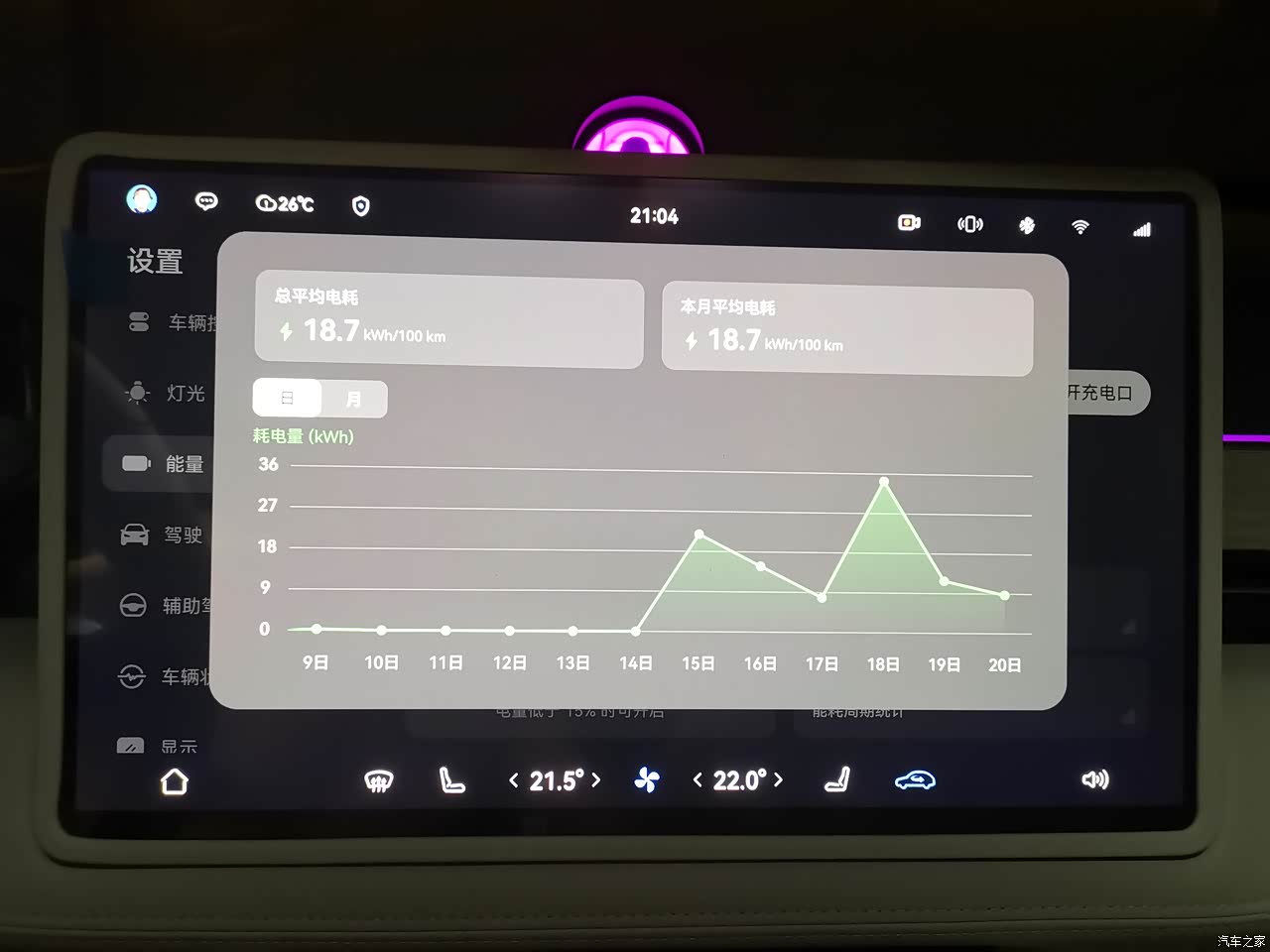 空调效果很好,所以电耗也高,还支持空调出风口的方向上屏幕滑动调解,哈哈
