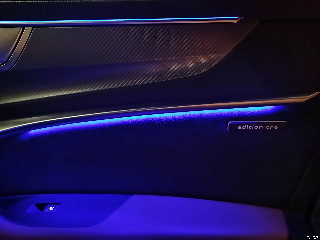 我选中的坐骑是限量版1000辆的Edison one 55TFSI先行版。外观青山黛内饰棕色配色很酷。3.0T340马力V648V轻混发动机,百公里加速5.6秒,可调空气悬架,四轮转向,自动补偿的激光大灯,B&O音响,配置基本拉满。