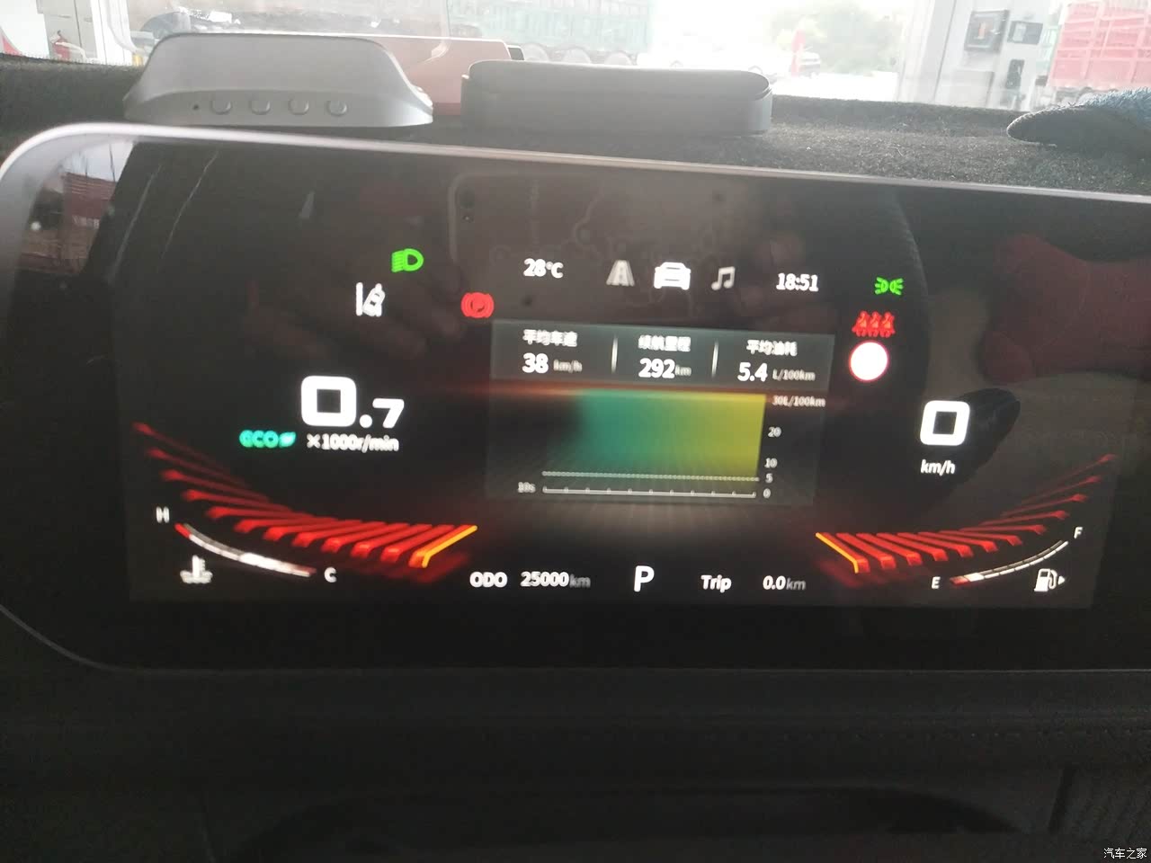 我用车在城市在石家庄郊区,大路上车很少,踩一脚油门能跑好几公里,所以他的油耗很低。