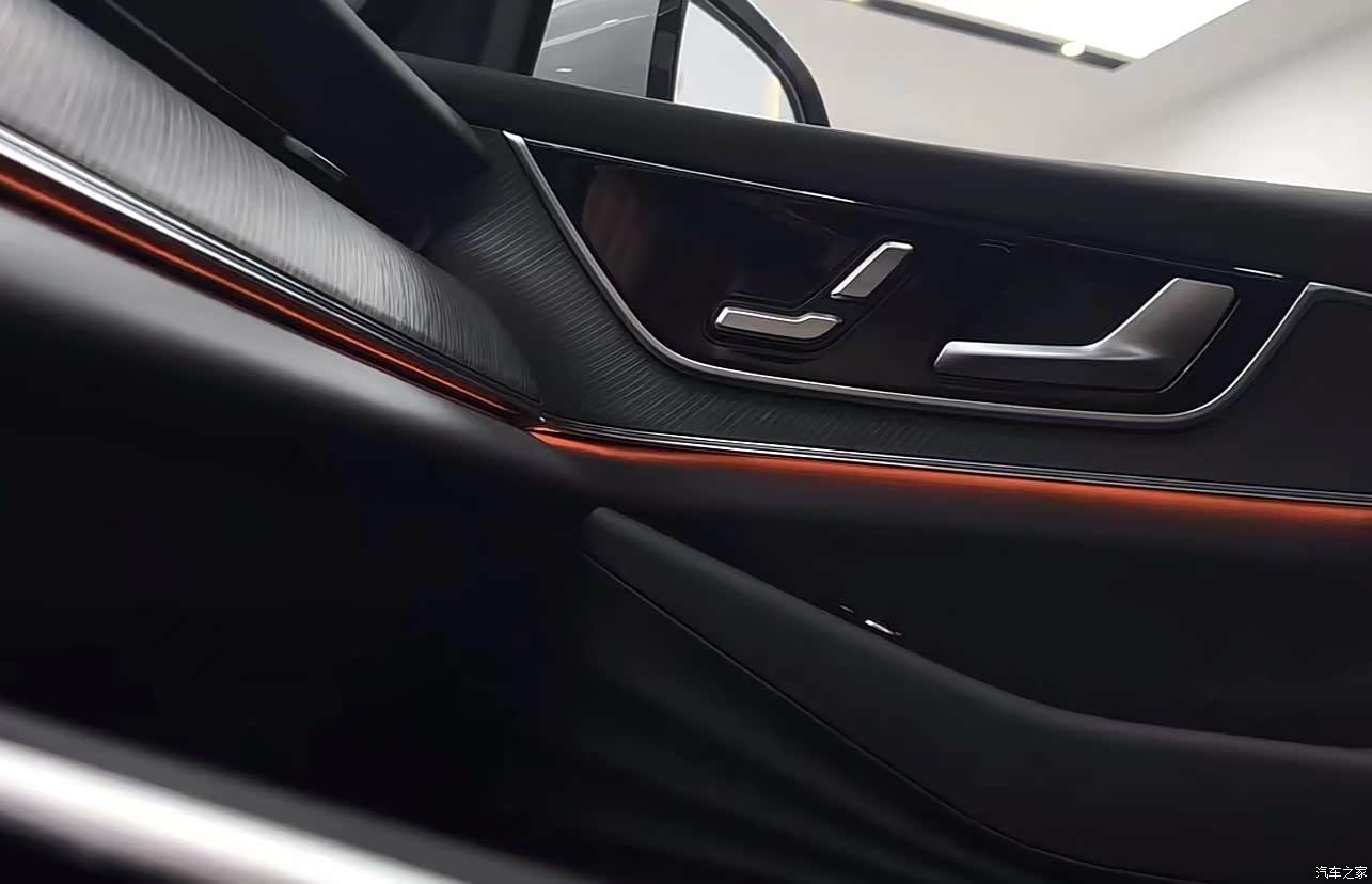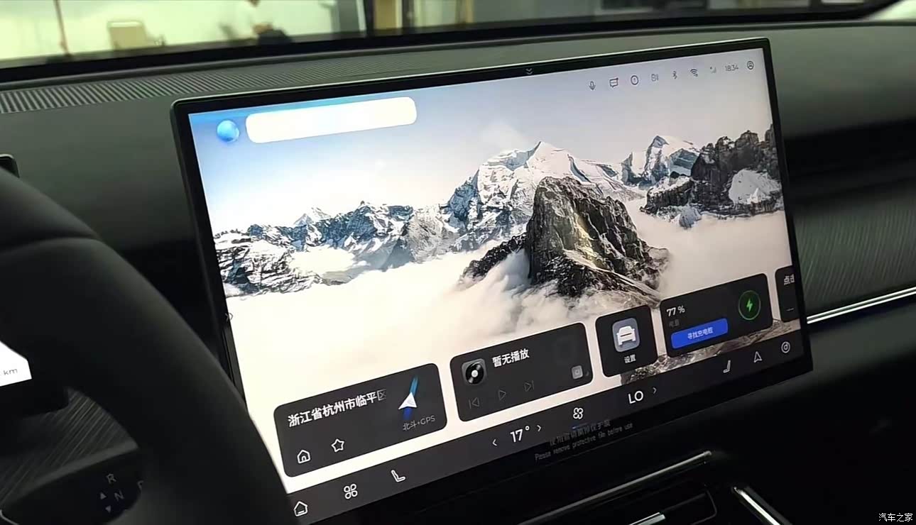 内饰非常厚实,这个中间的大屏幕停车充电时追个剧很棒。采用了横贯式的 T 字形中控台设计,有全蓝白和全黑两款内饰配色。仪表盘和中控屏幕四周黑边控制得不错,视觉上具有一定的“高级感”,木纹饰板带有类似磨砂的触感,手感较好,但顶部蓝色的搪塑工艺和下方的皮质包裹触感偏硬。中控台的木纹装饰表面贴合均匀,各处按压也无明显形变和异响,且中控台和两侧门板的接缝精细,肉眼观察两侧宽度、对齐位置基本对称。电动座椅调节实体控件设置在两侧门板上沿前端,类似奔驰的设计,新车主易上手,但也导致门板需两种方案,且对按键表面处理要求更严格,成本更高,实际使用不如设置在坐垫一侧顺手。方向盘环身较大,包裹皮革,摩擦力足但造型普通,两侧触控键手感和反应速度一般。车机 HMI 采用大壁纸+下方快捷卡片+底部 dock 栏的布局,类似鸿蒙风格,屏幕细腻、分辨率清晰,交互合理,拖拉地图不卡顿。